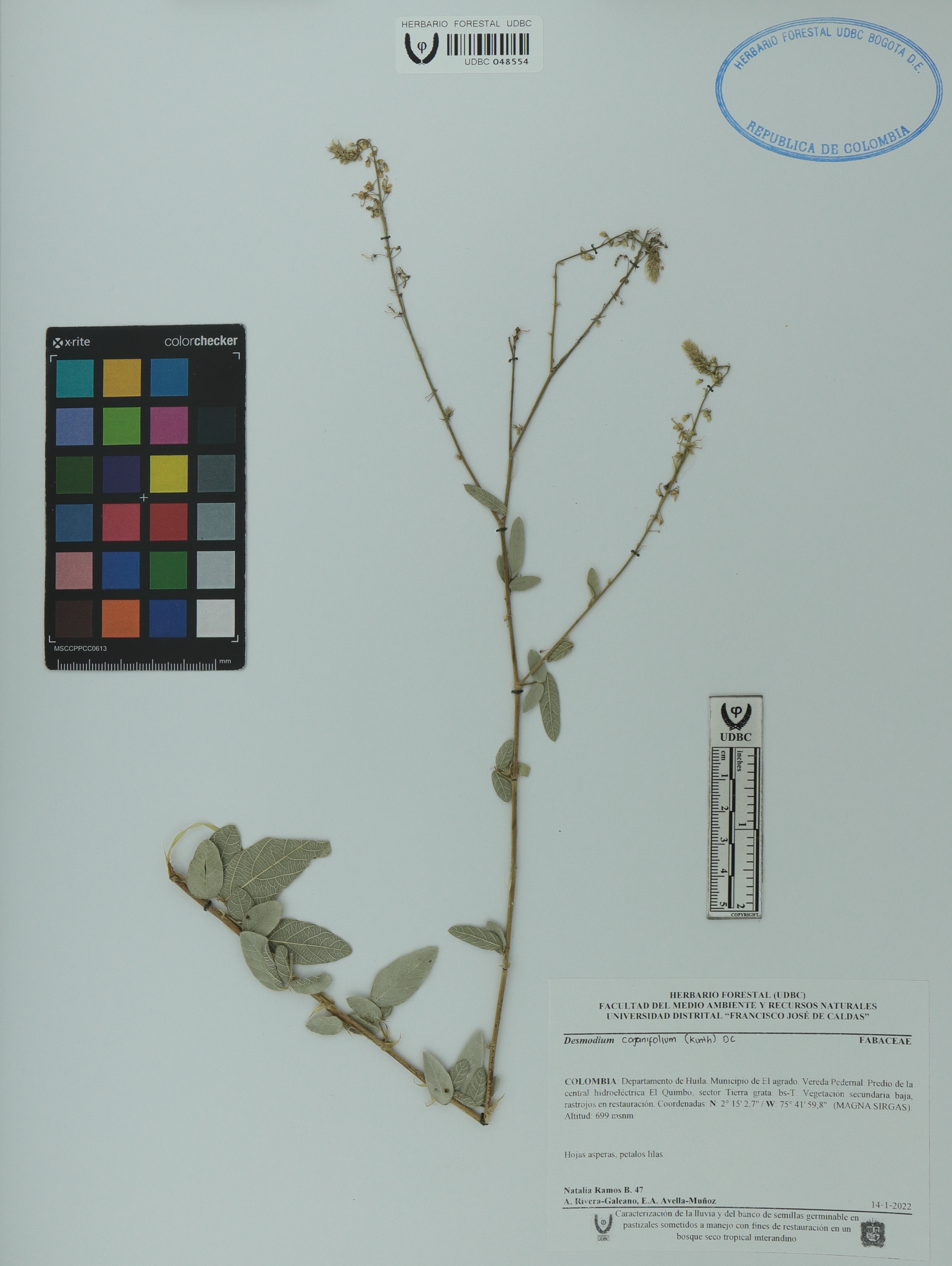| dc.description | Fotografía del ejemplar Ramos-B., Natalia 47, determinado como Desmodium cajanifolium | |