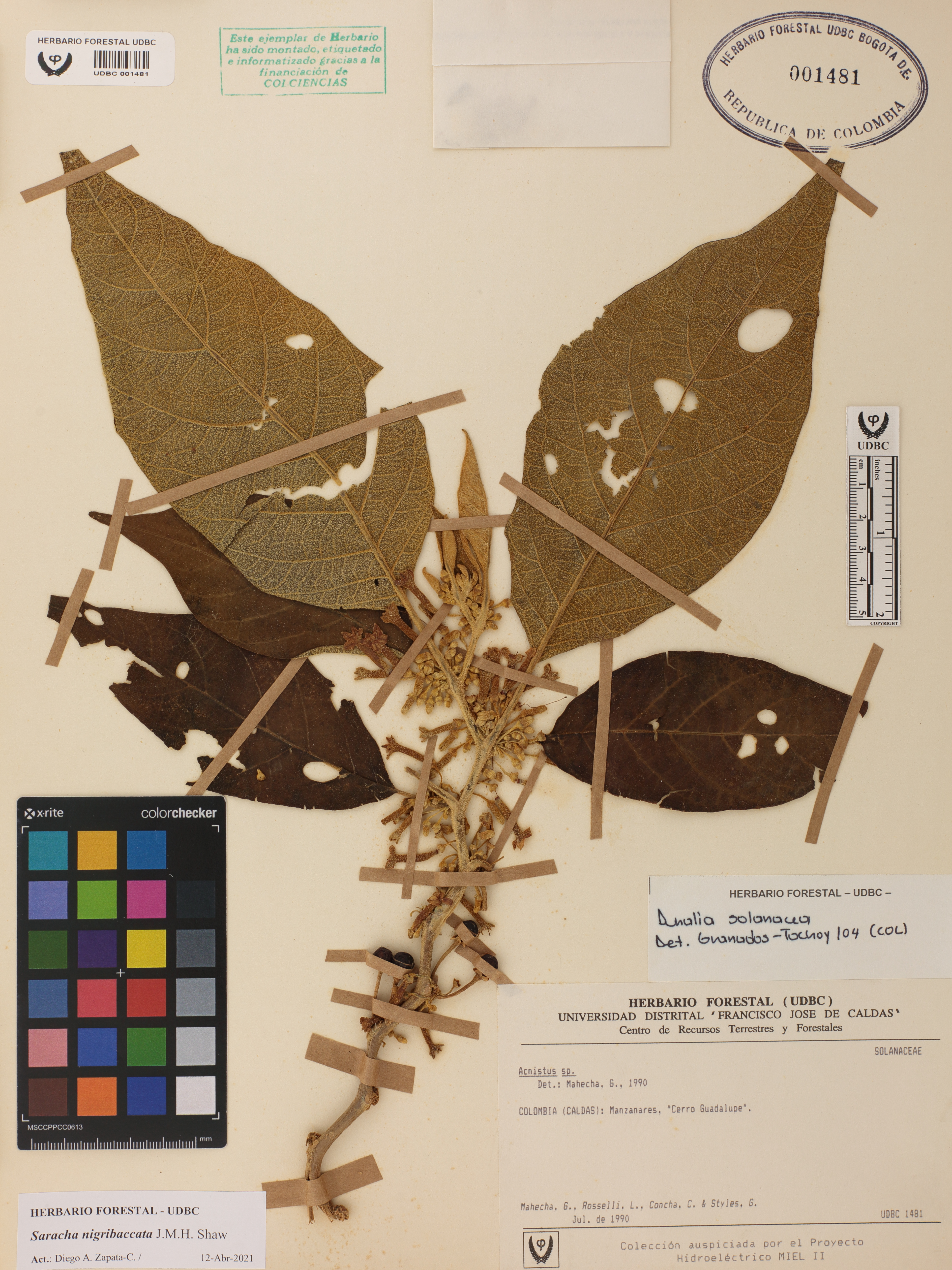 | dc.description | Fotografía del ejemplar Mahecha, G., determinado como Saracha nigribaccata en el año 2004 | |