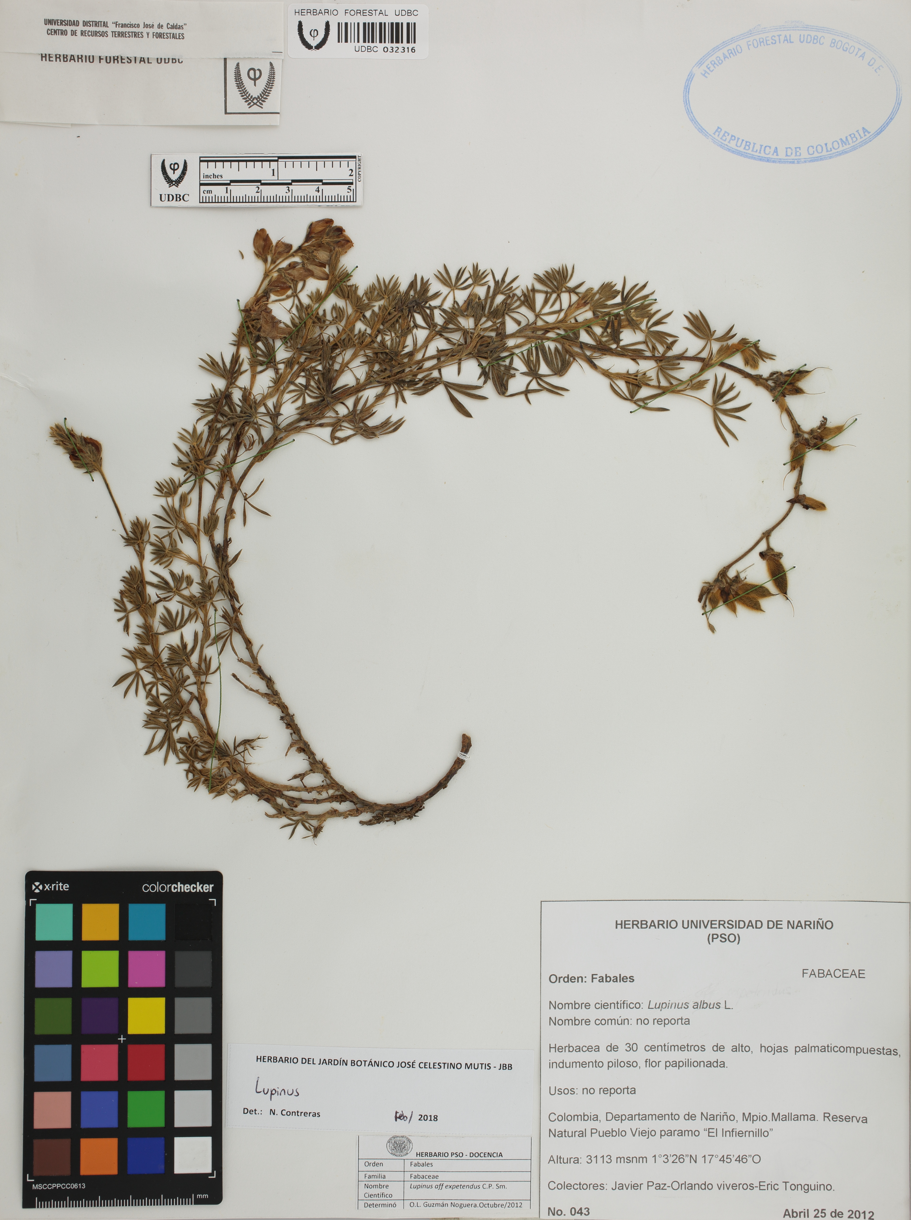Fotografía del ejemplar Paz, J. 43, determinado como Lupinus sp. en el año 2018