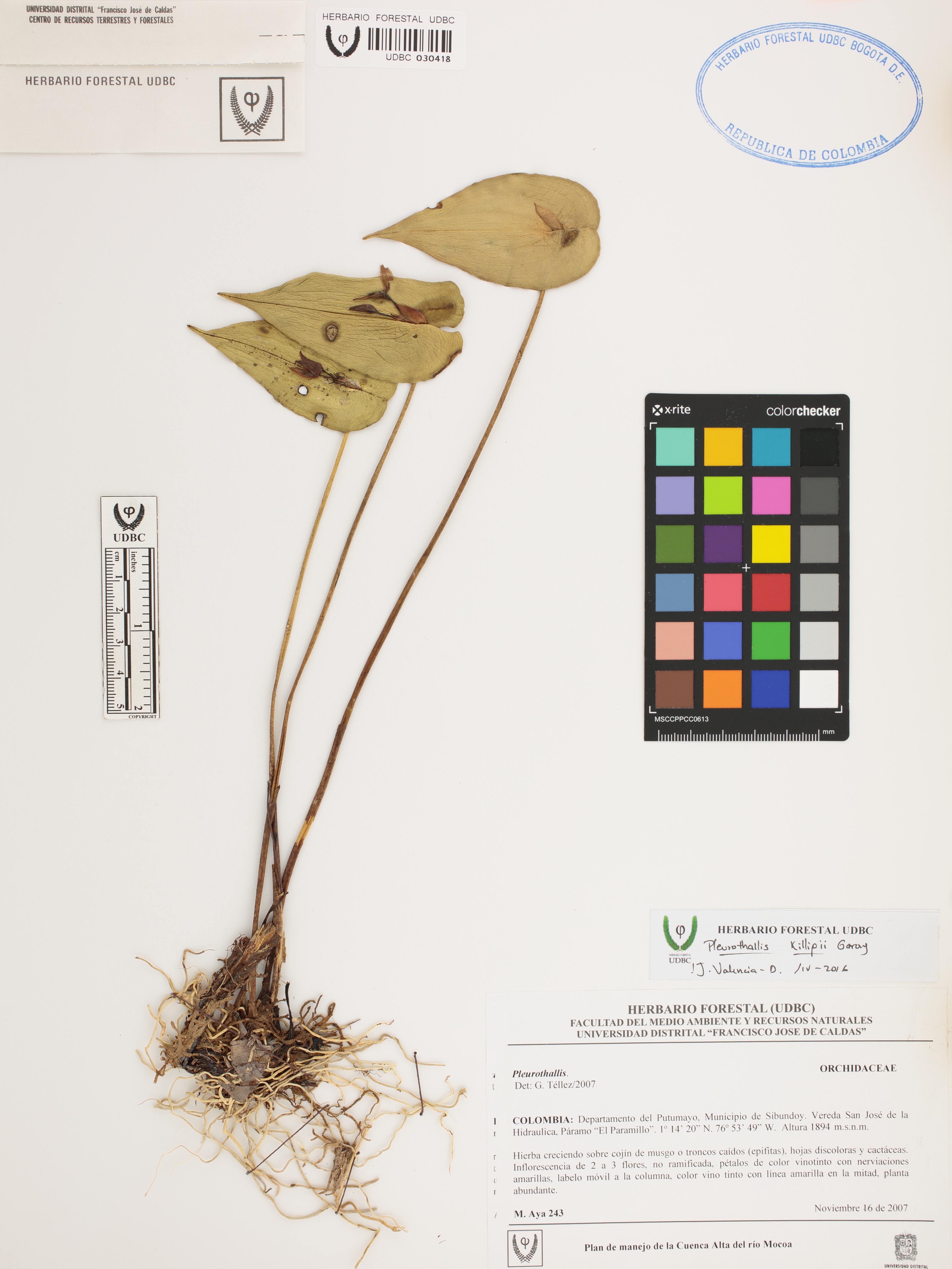 Fotografía del ejemplar Aya, M. 243, determinado como Pleurothallis killipii en el año 2016