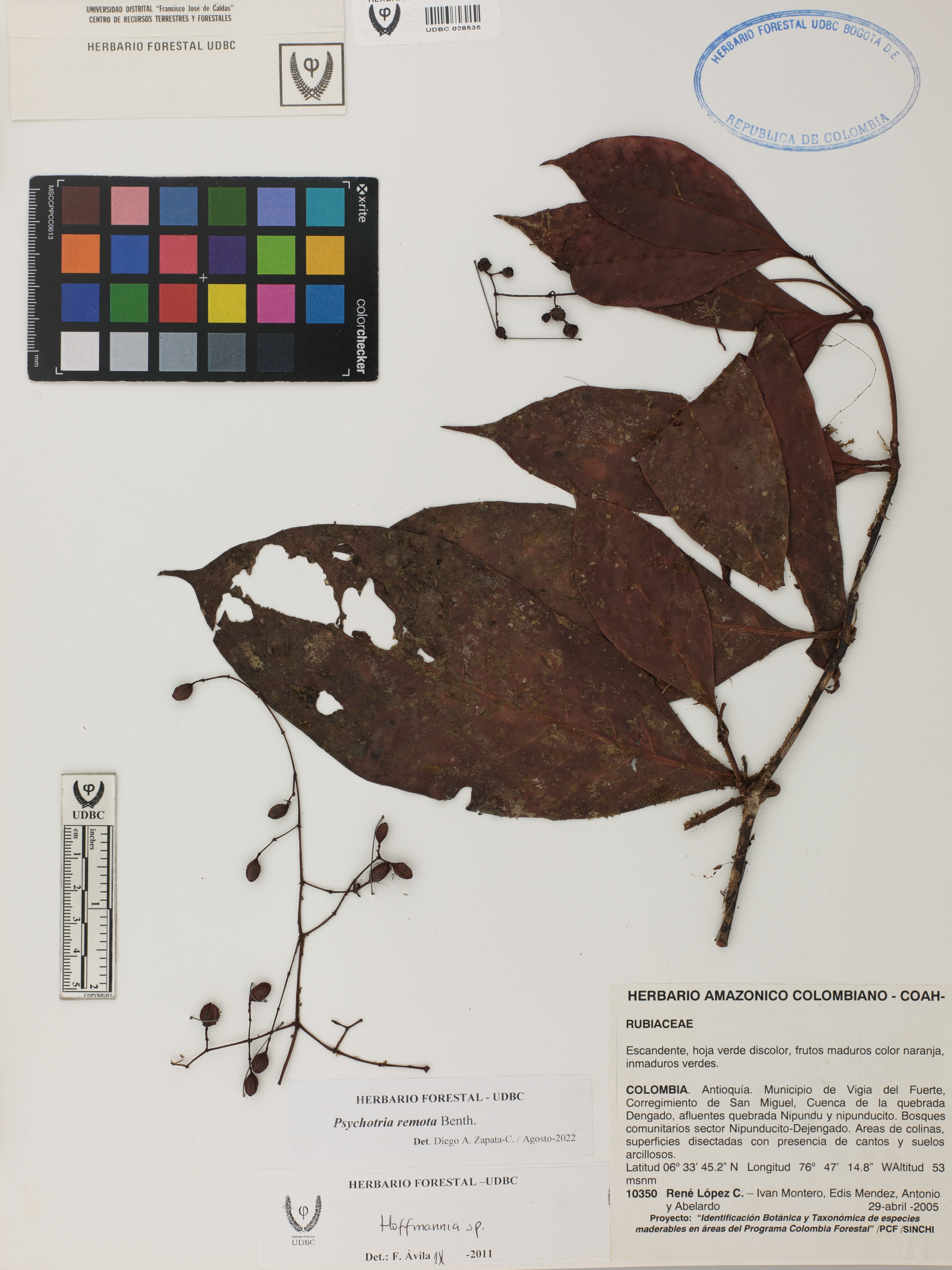 Fotografía del ejemplar López, R. 10350, determinado como Psychotria remota en el año 2022