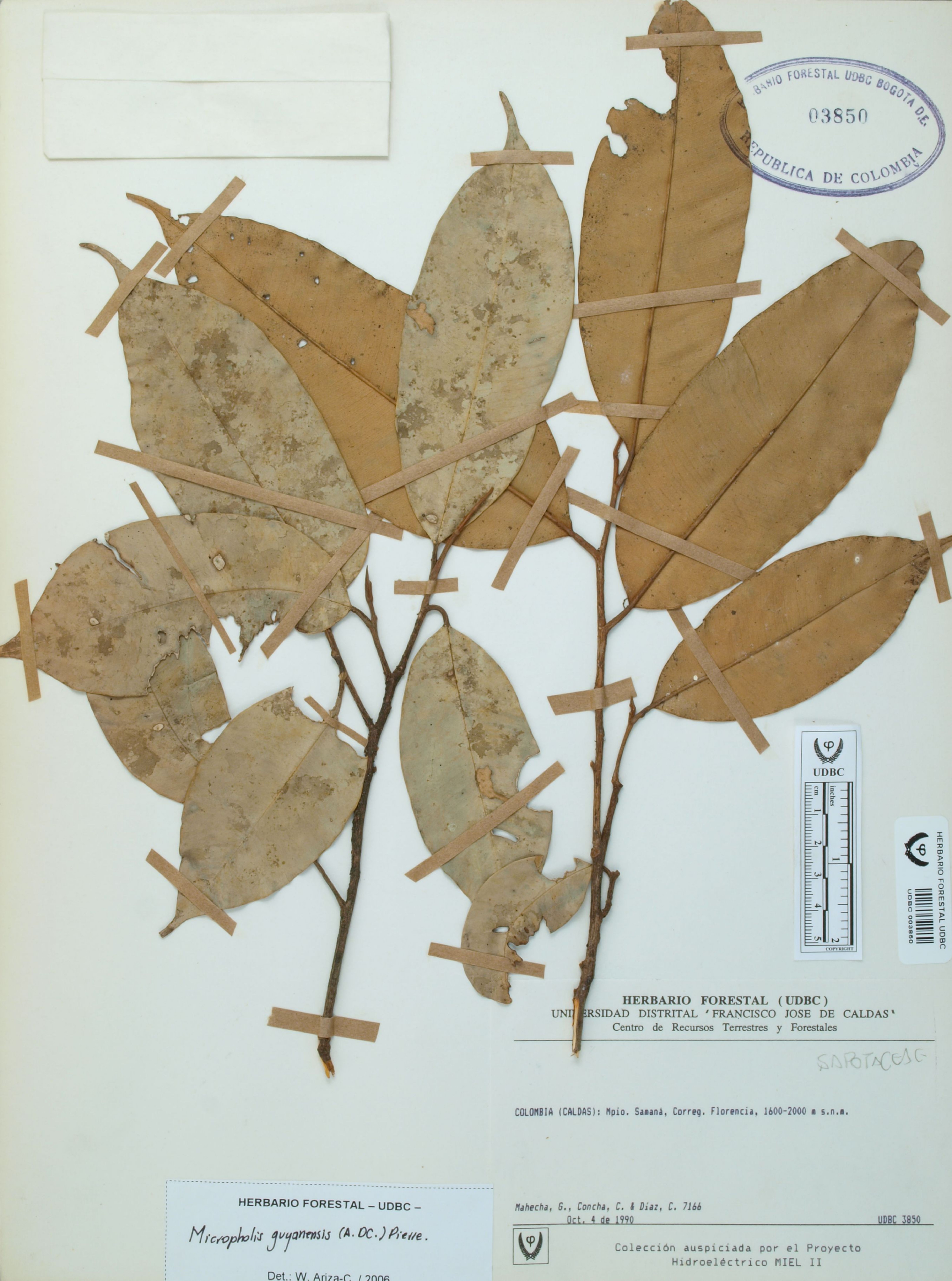 Fotografía del ejemplar Mahecha, G. 7166, determinado como Micropholis guyanensis en el año 2006