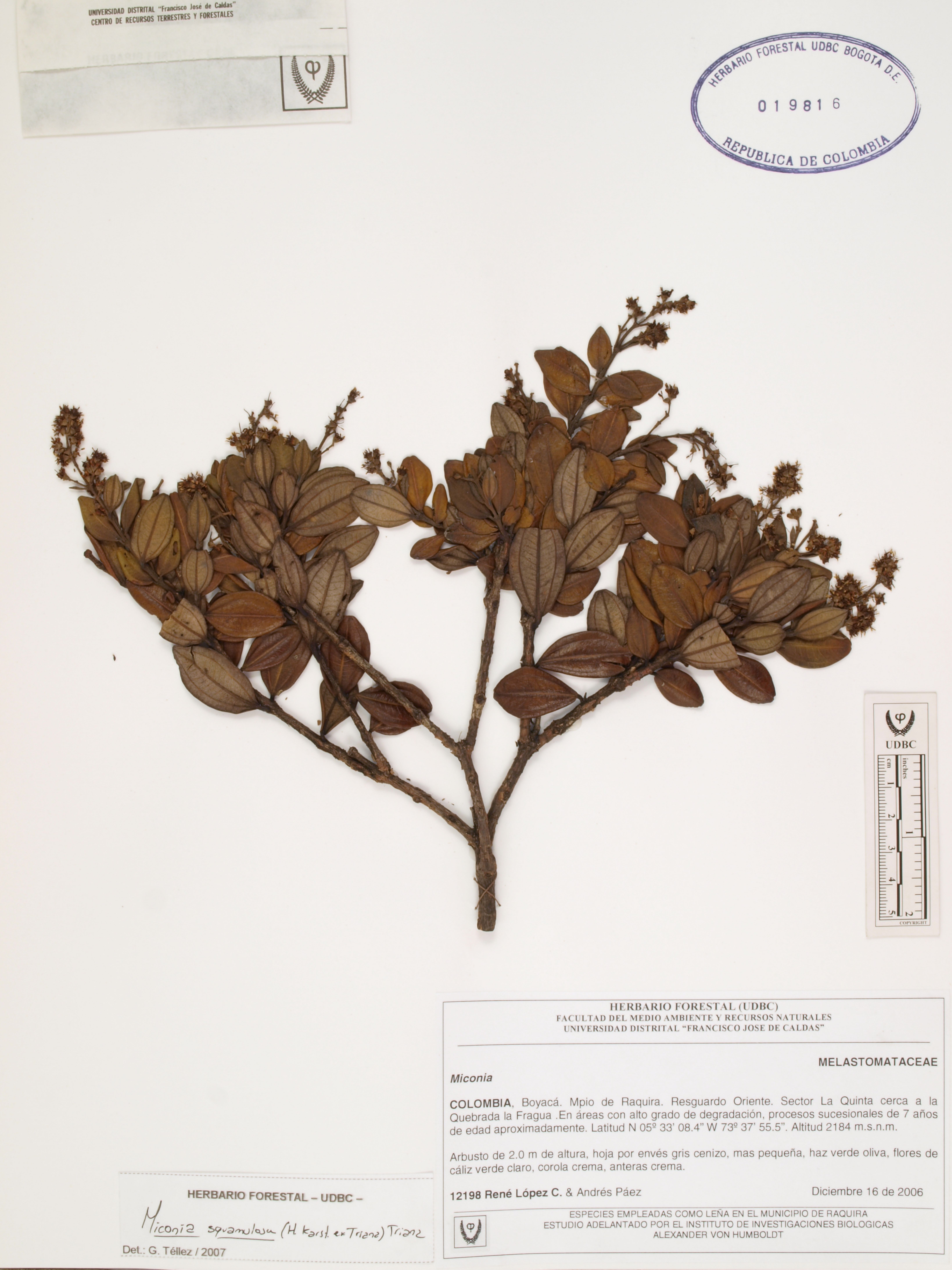 | dc.description | Fotografía del ejemplar López, R. 12198, determinado como Miconia squamulosa en el año 2007 | |