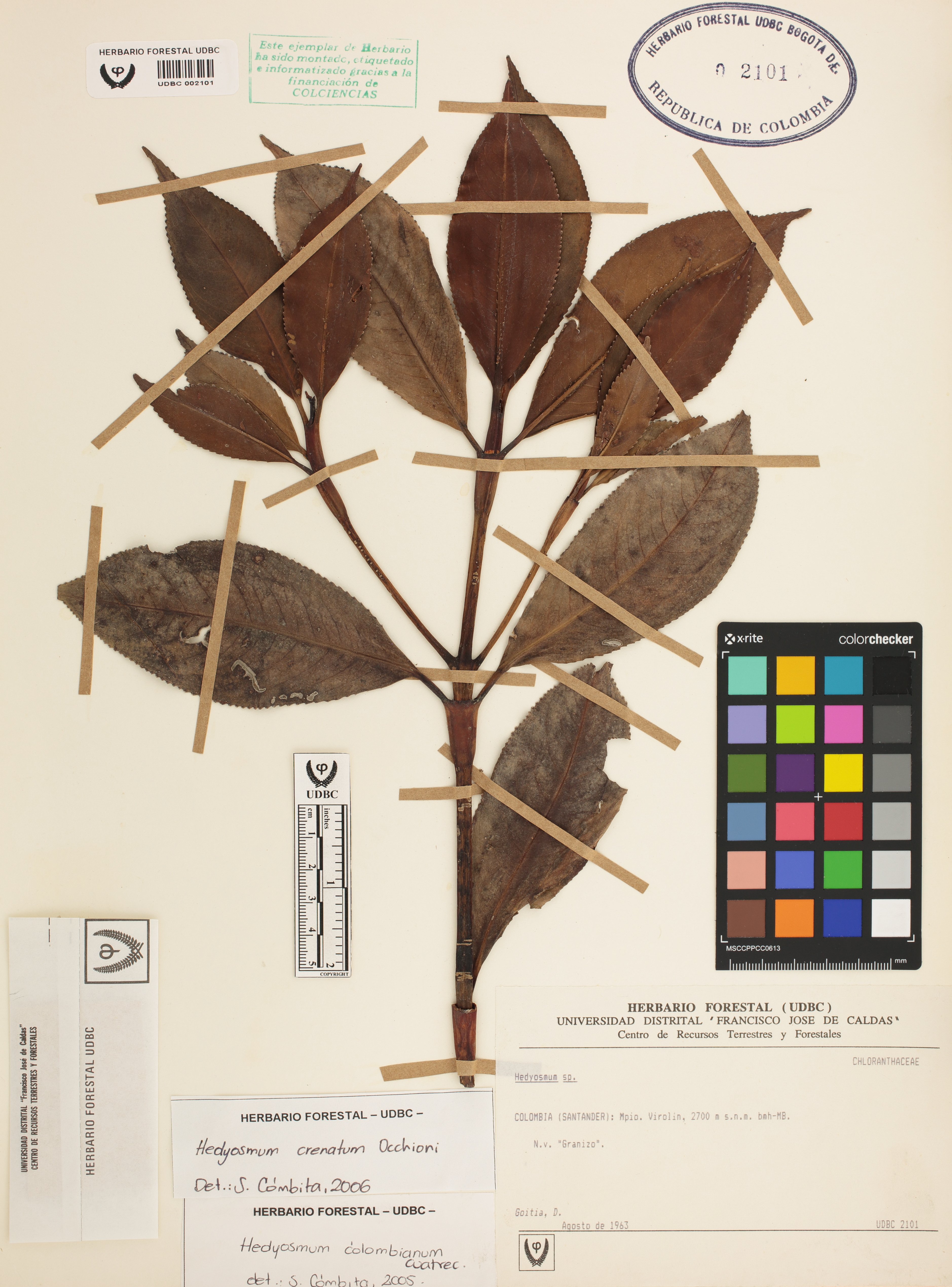Fotografía del ejemplar Goitia, D., determinado como Hedyosmum crenatum en el año 2006