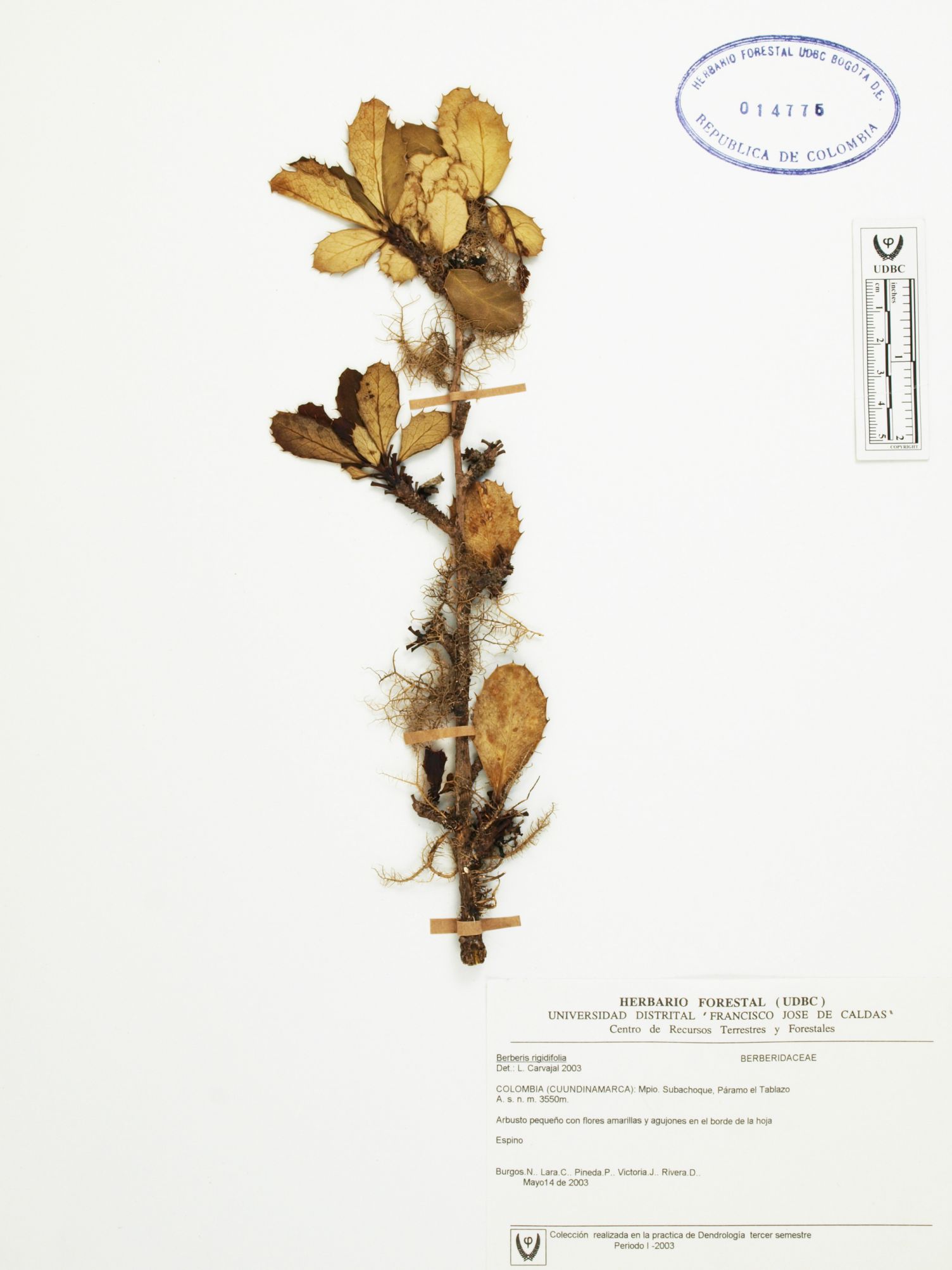 Fotografía del ejemplar Burgos, N., determinado como Berberis rigidifolia en el año 2003