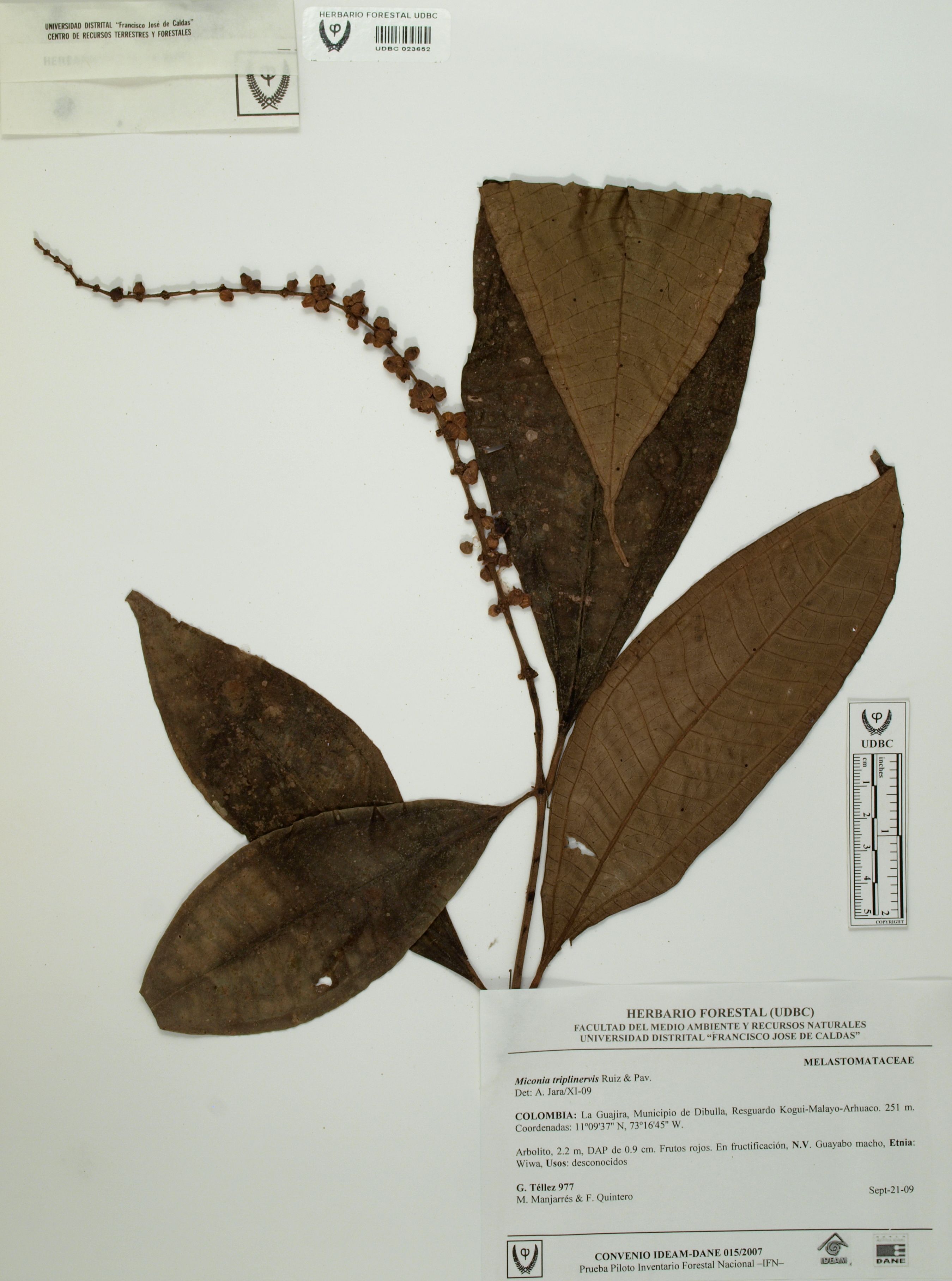 Fotografía del ejemplar Téllez, G. 977, determinado como Miconia triplinervis en el año 2009