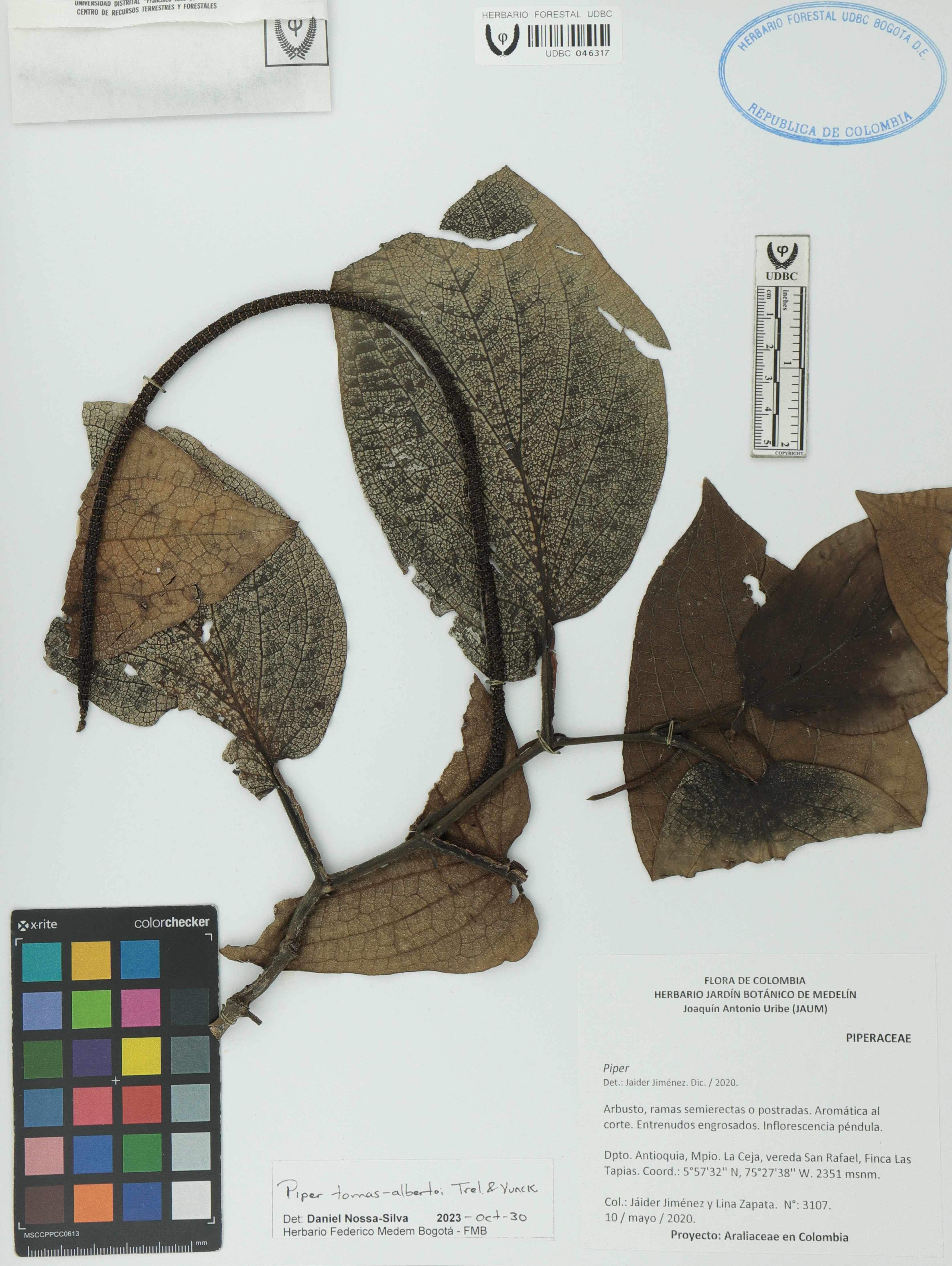 Fotografía del ejemplar Jiménez, J. 3107, determinado como Piper tomas-albertoi en el año 2023