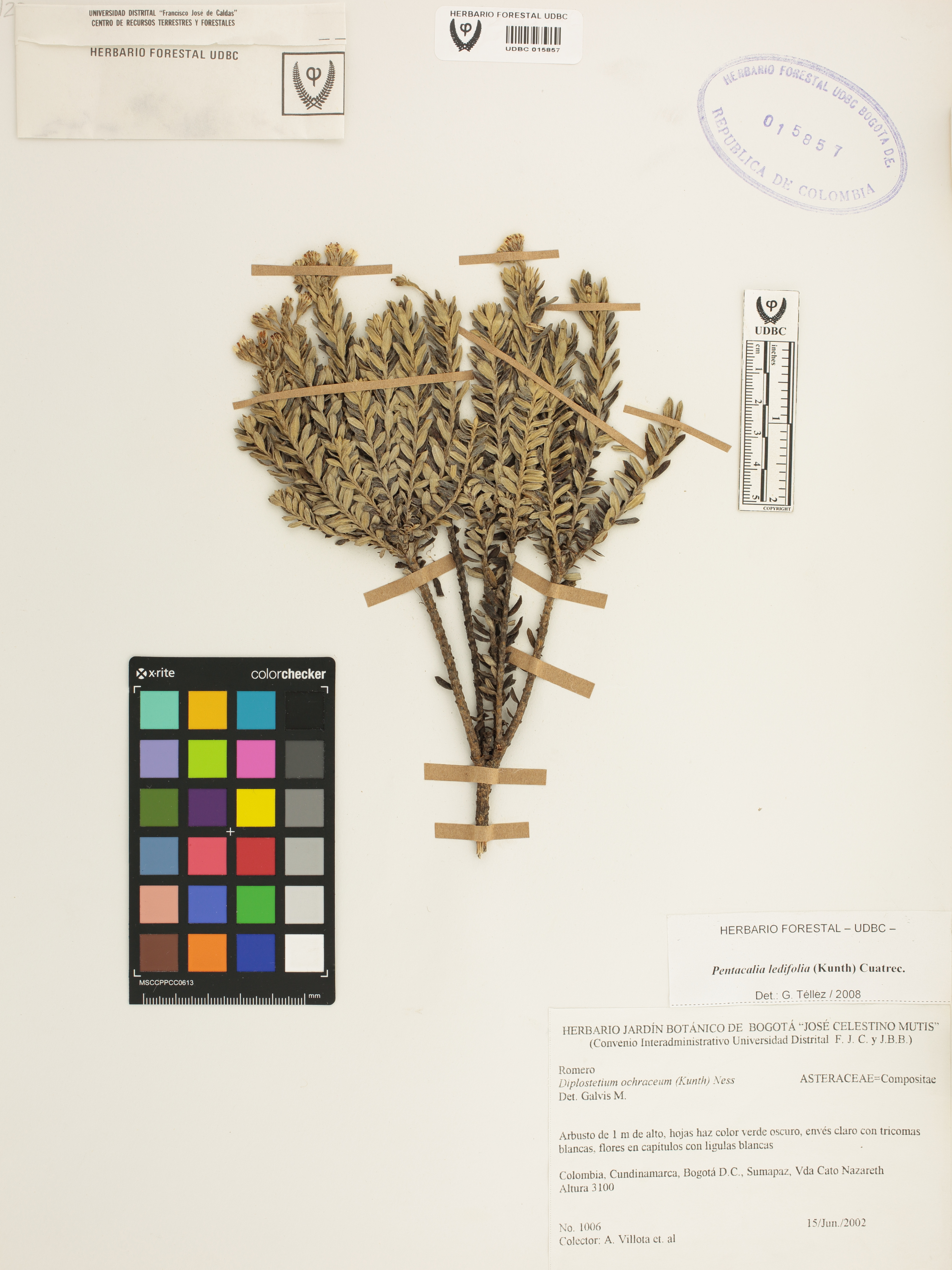 Fotografía del ejemplar Villota, A. 1006, determinado como Pentacalia ledifolia en el año 2008