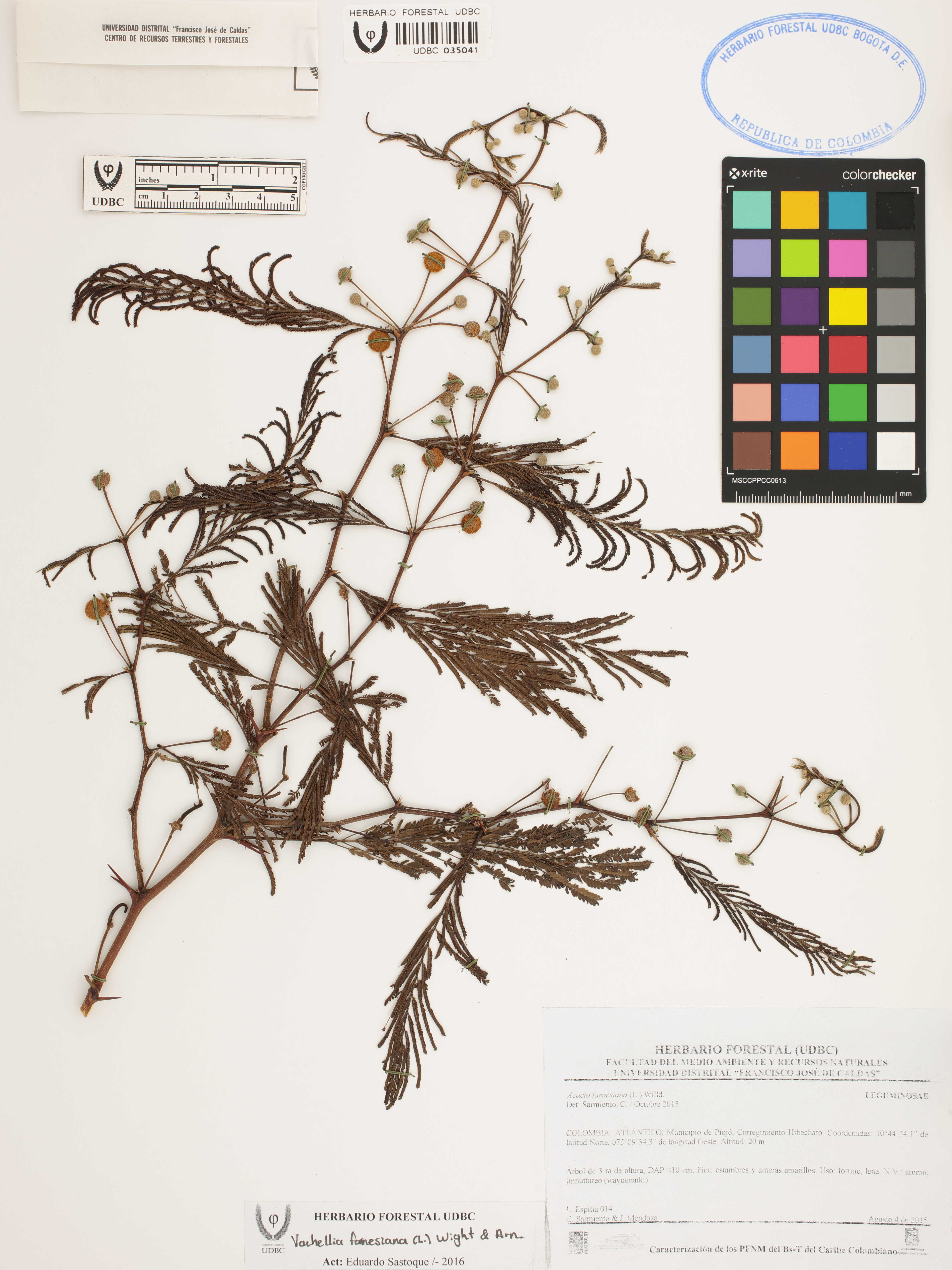 Fotografía del ejemplar Espitia, L. 14, determinado como Vachellia farnesiana en el año 2016