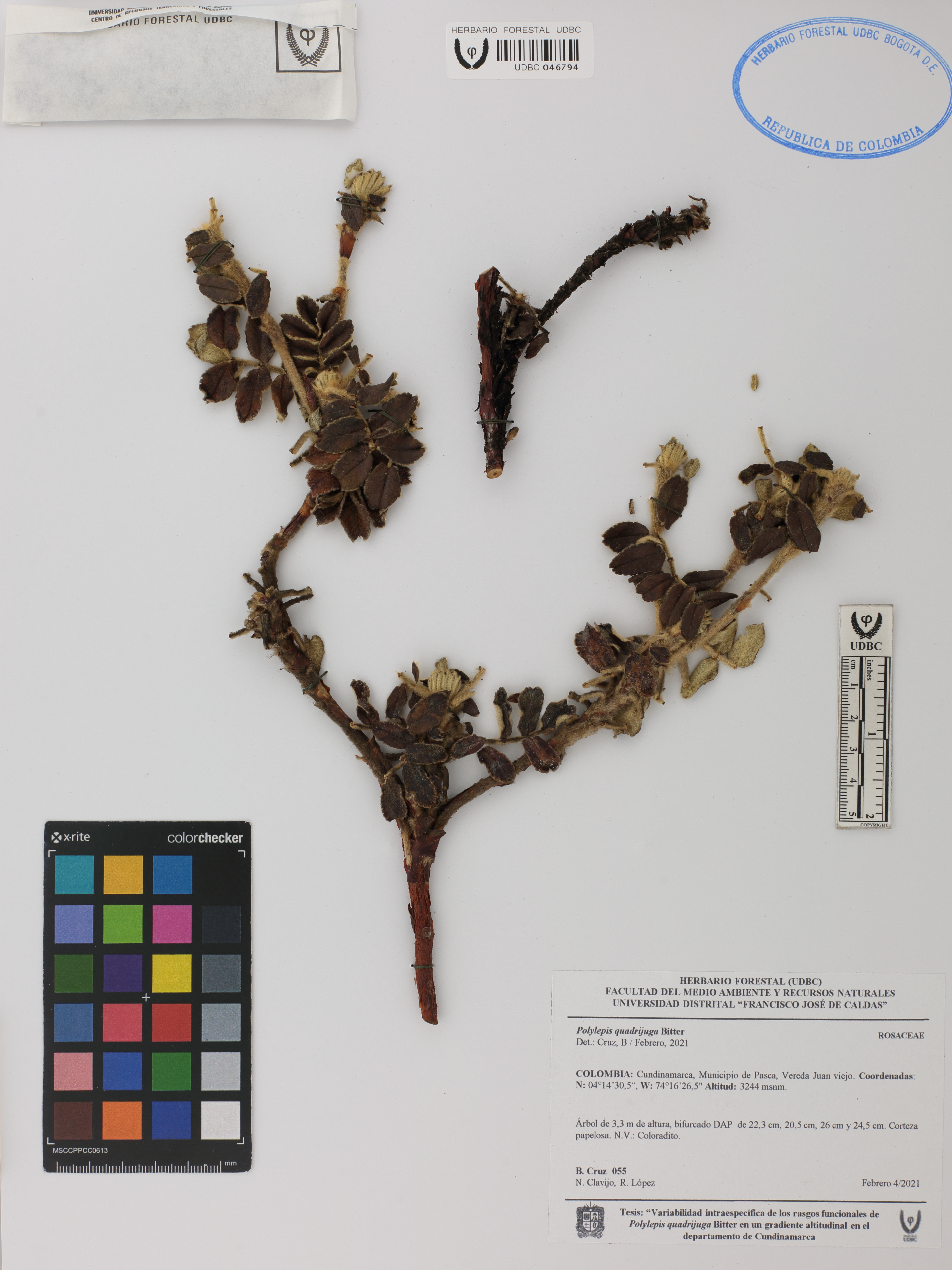 | dc.description | Fotografía del ejemplar Cruz, B. 55, determinado como Polylepis quadrijuga en el año 2021 | |
