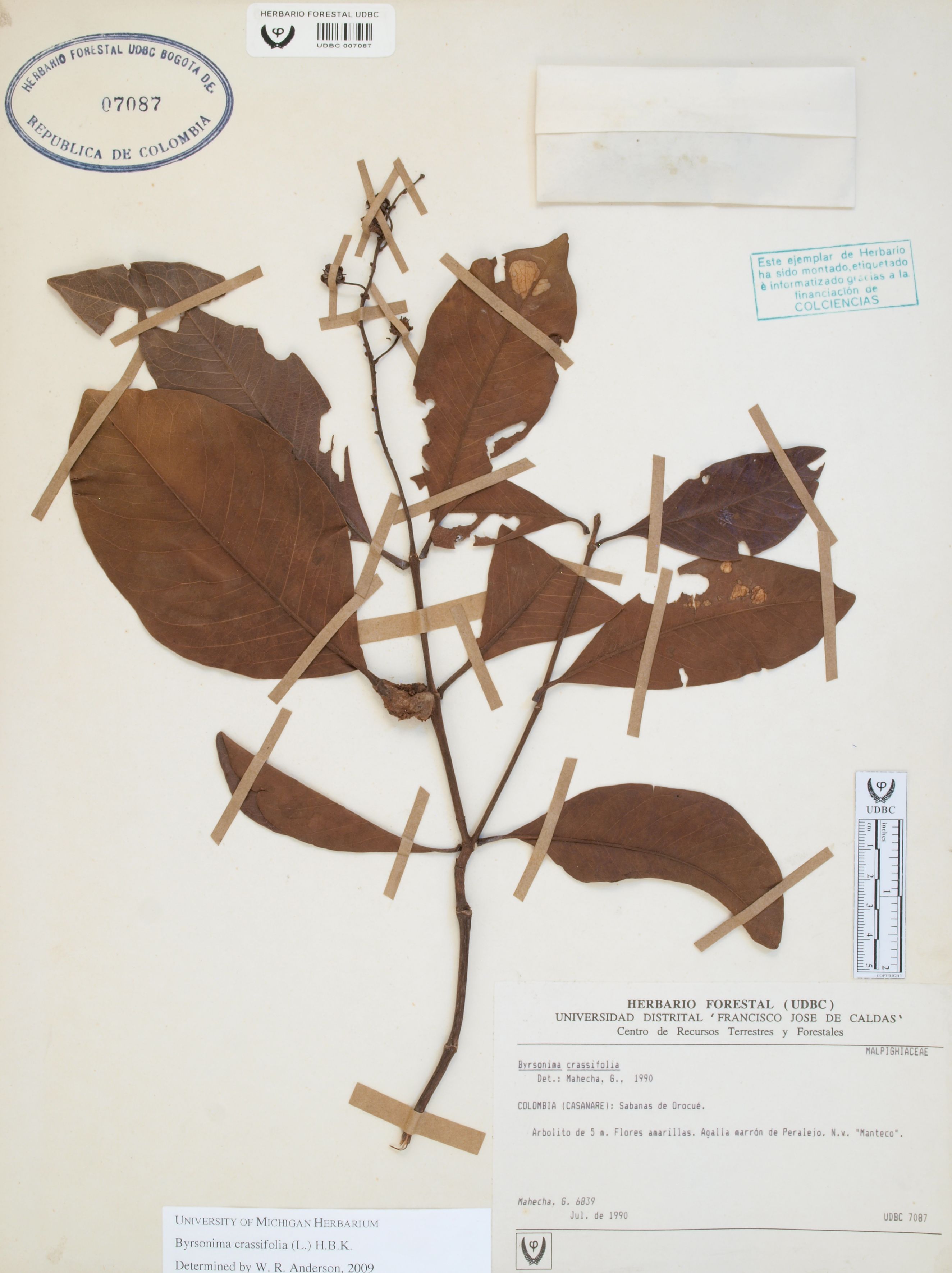 Fotografía del ejemplar Mahecha, G. 6839, determinado como Byrsonima crassifolia en el año 2009