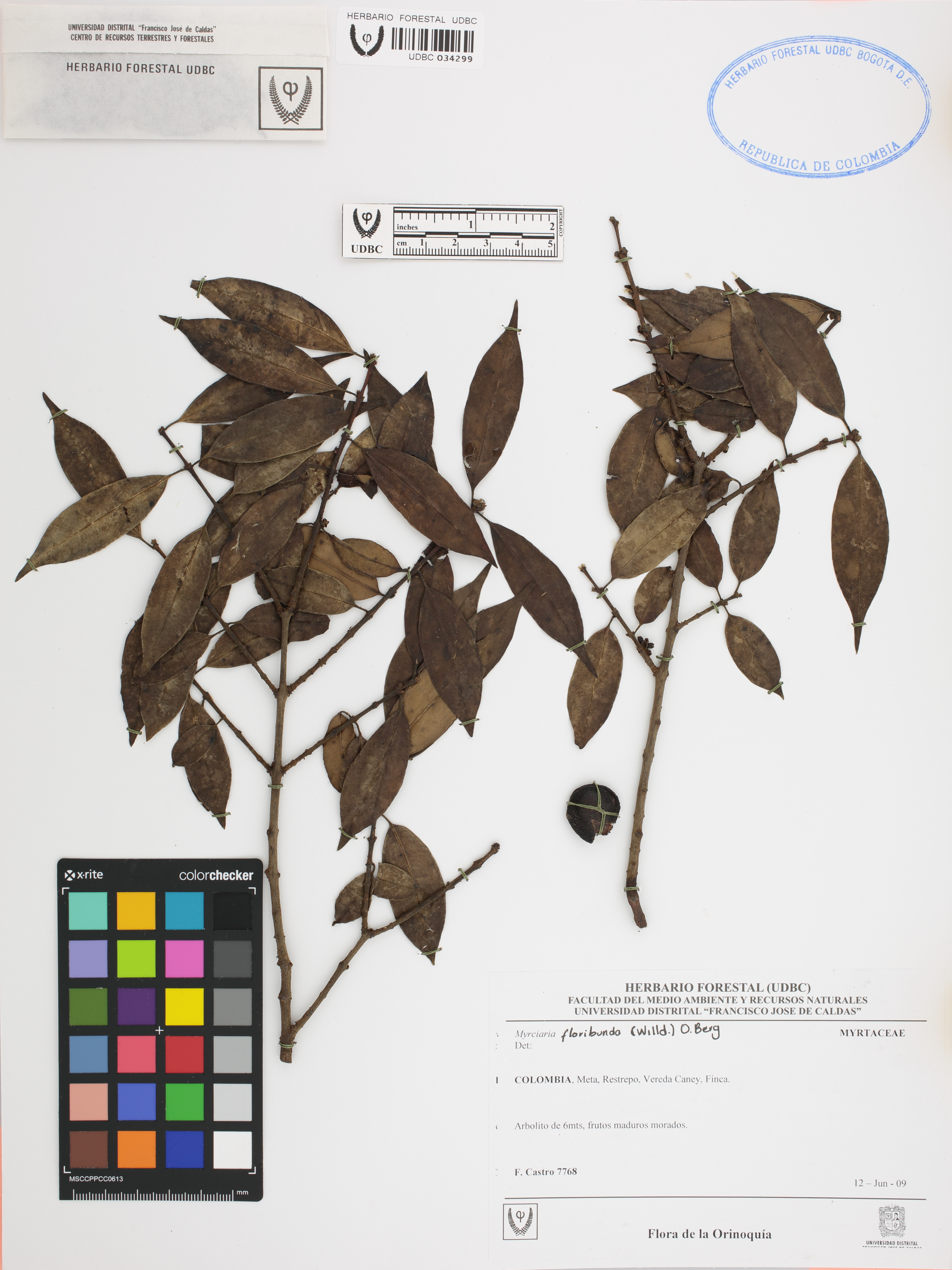 Fotografía del ejemplar Castro, F. 7768, determinado como Myrciaria floribunda