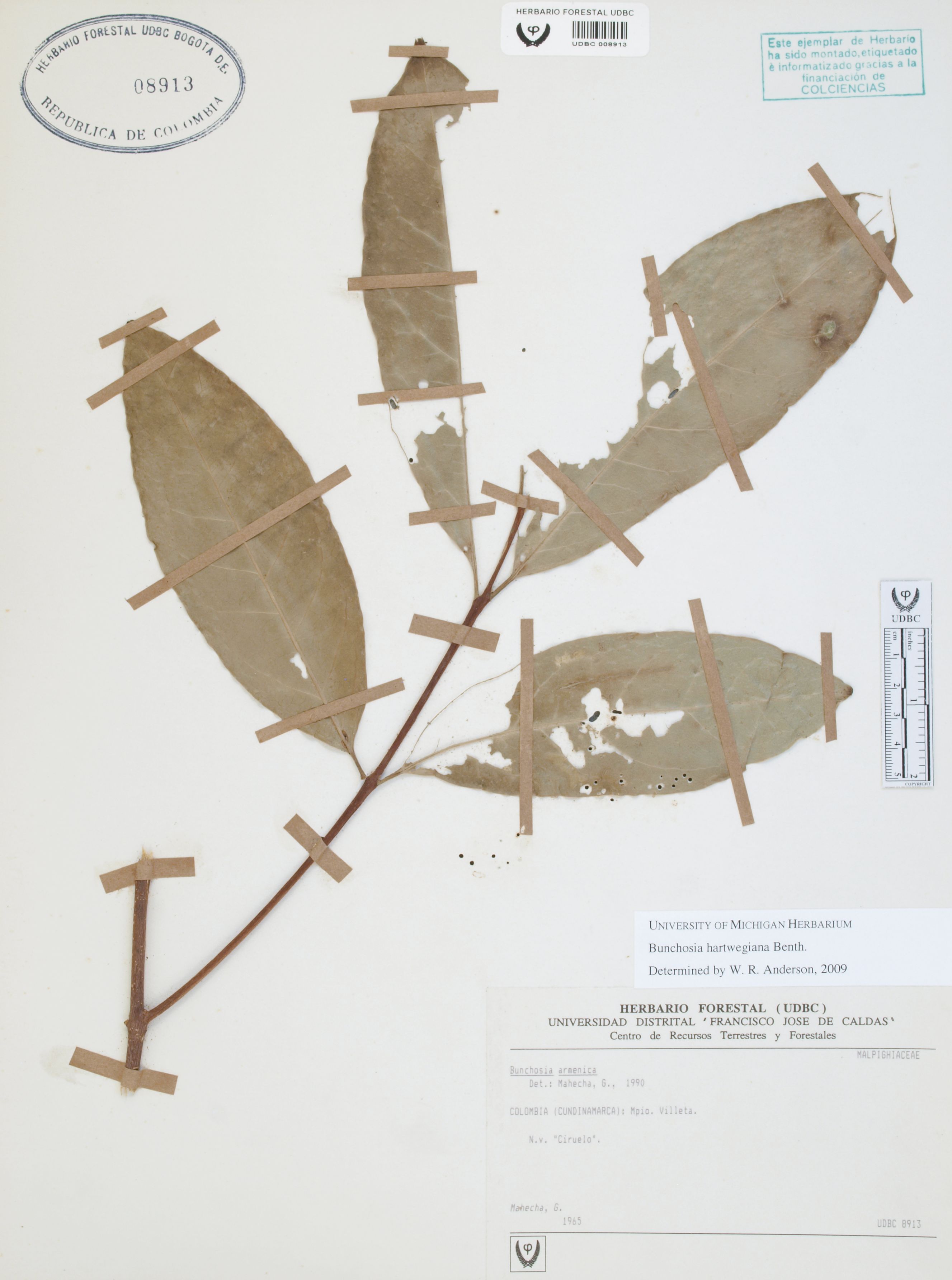 Fotografía del ejemplar Mahecha, G., determinado como Bunchosia hartwegiana en el año 2009