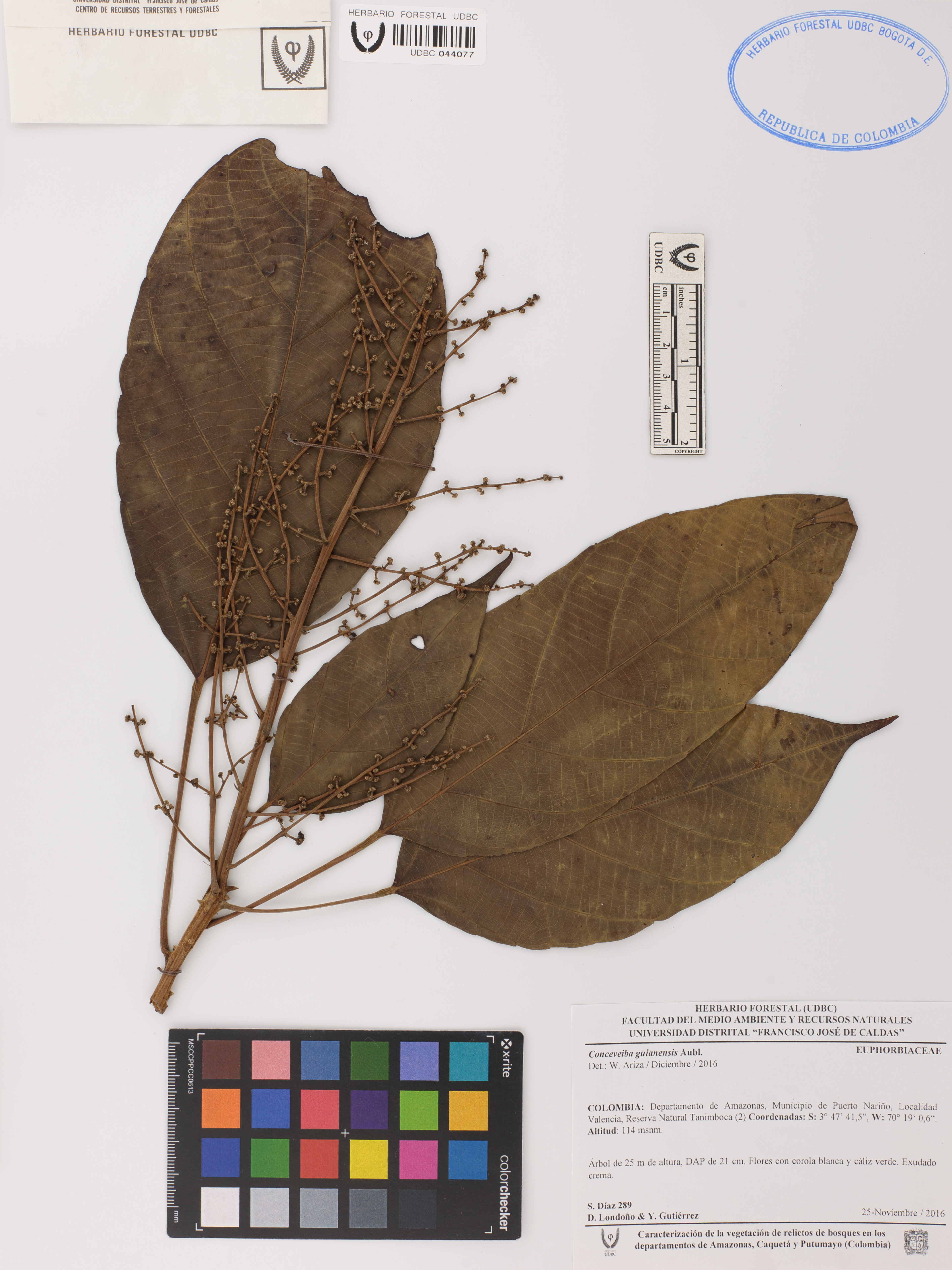Fotografía del ejemplar Díaz, S. 289, determinado como Conceveiba guianensis en el año 2016