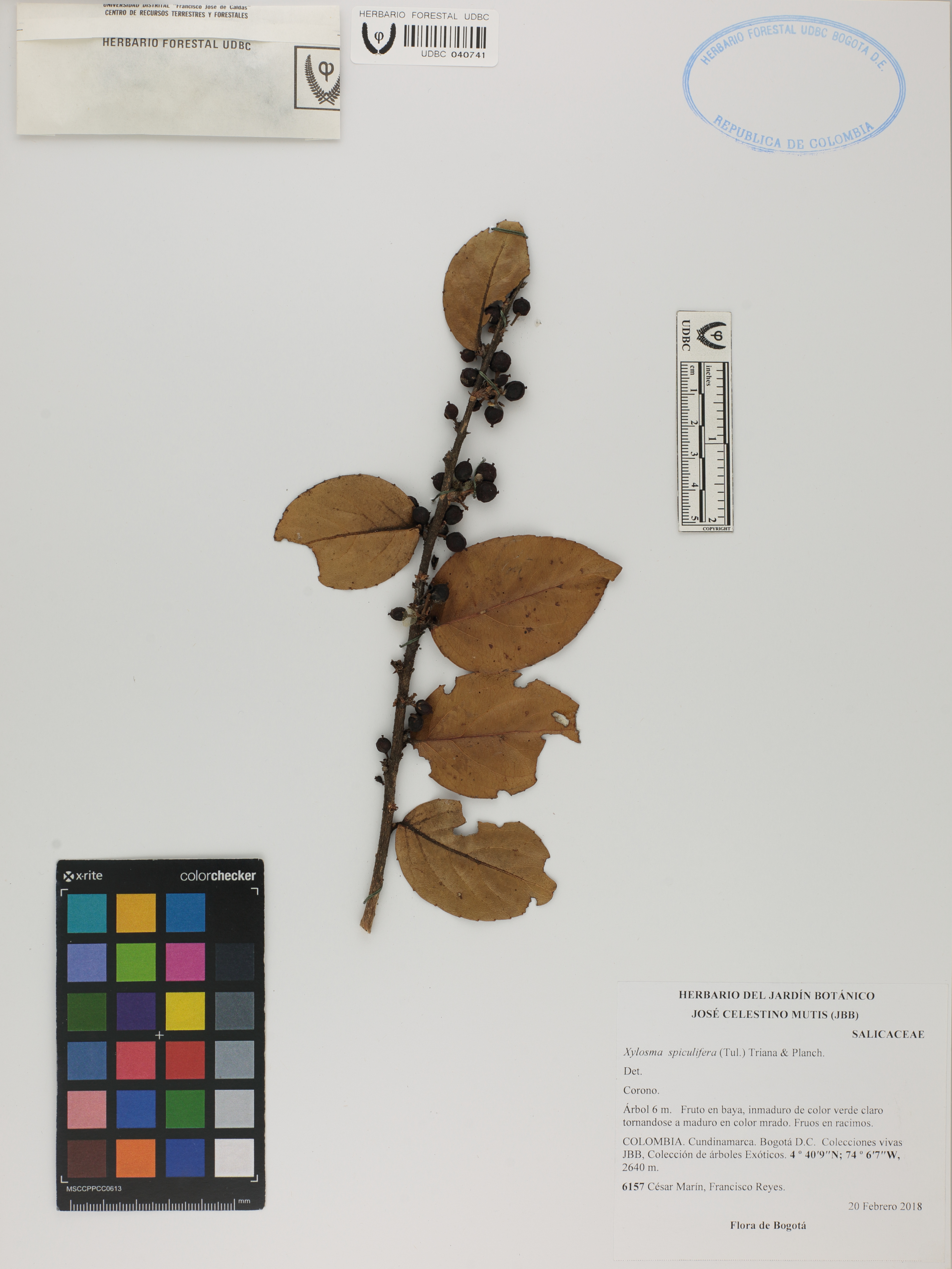 Fotografía del ejemplar Marín, C. 6157, determinado como Xylosma spiculifera