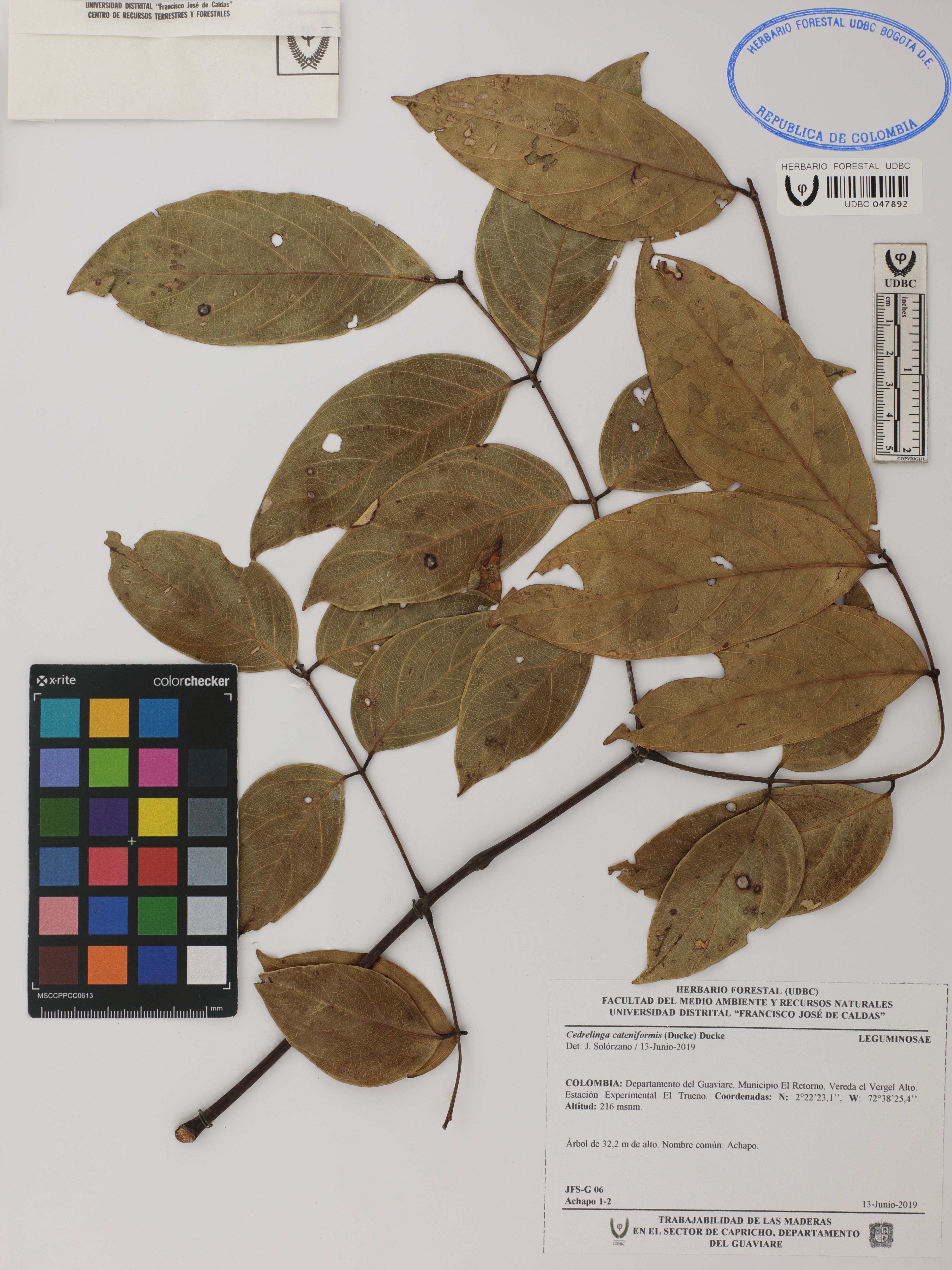Fotografía del ejemplar Solorzano, J. 6, determinado como Cedrelinga cateniformis en el año 2019