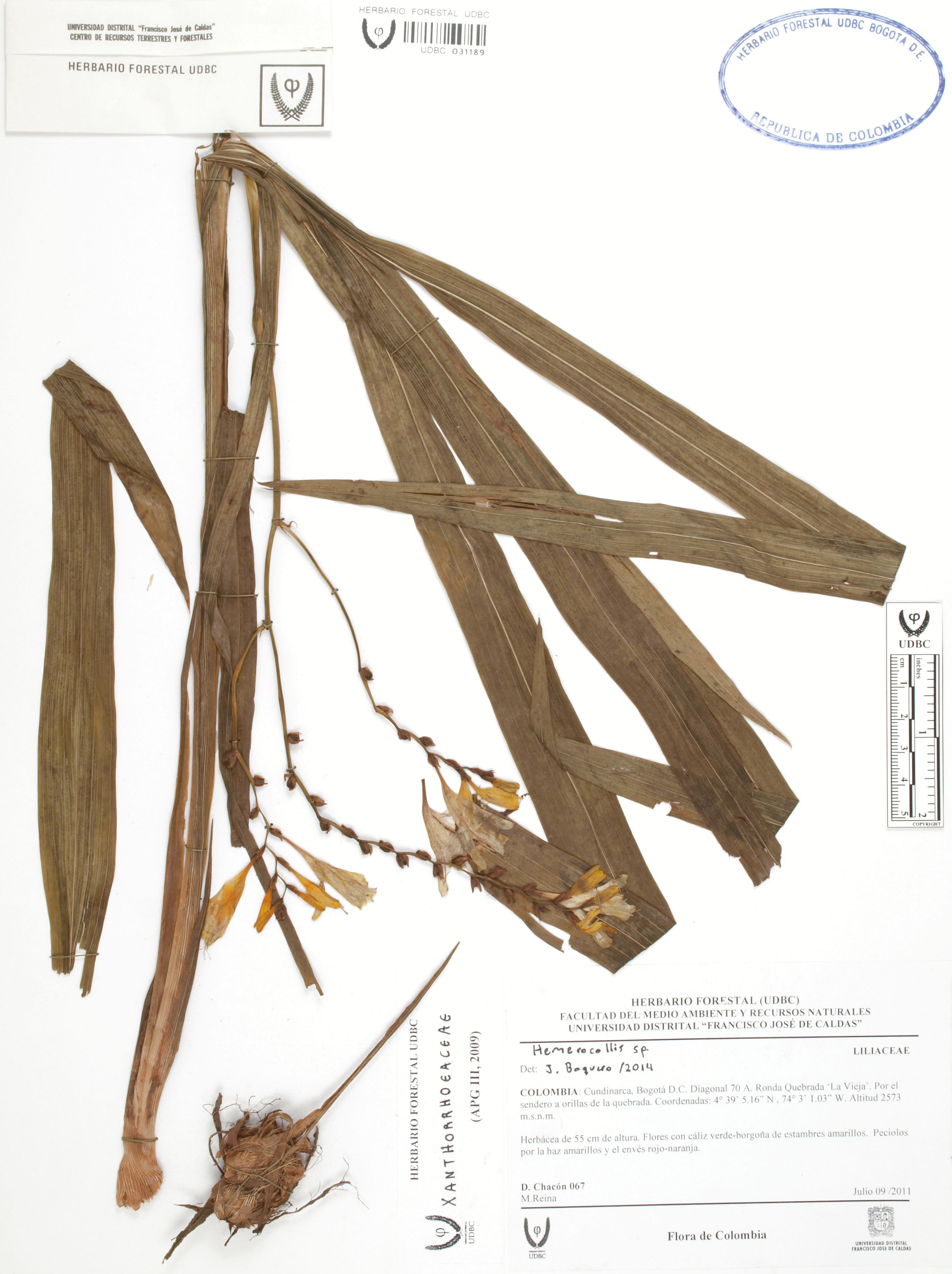 Fotografía del ejemplar Chacón, D. 67, determinado como Crocosmia × crocosmiiflora en el año 2024