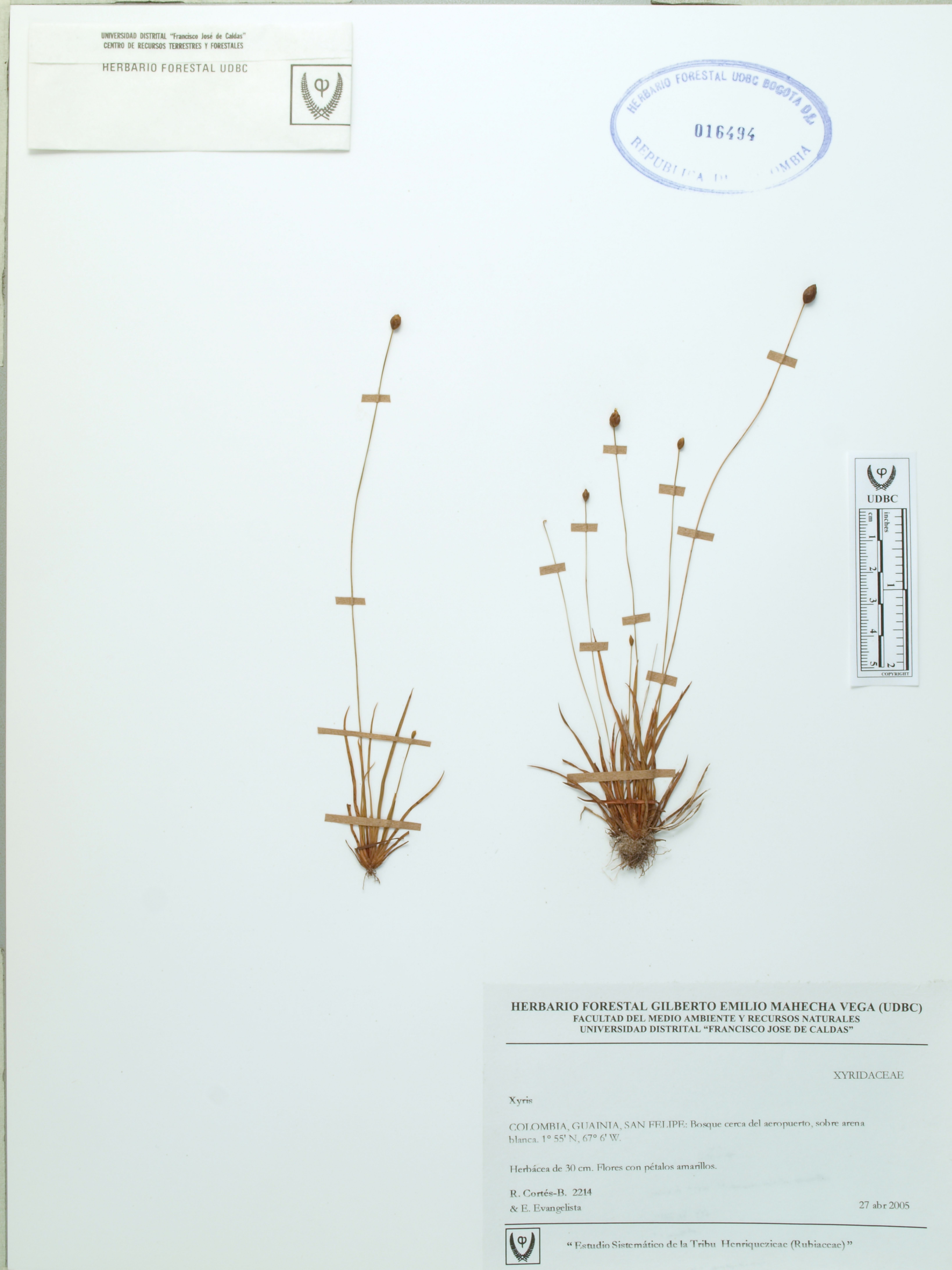 Fotografía del ejemplar Cortés-B., R. 2214, determinado como Xyris sp.