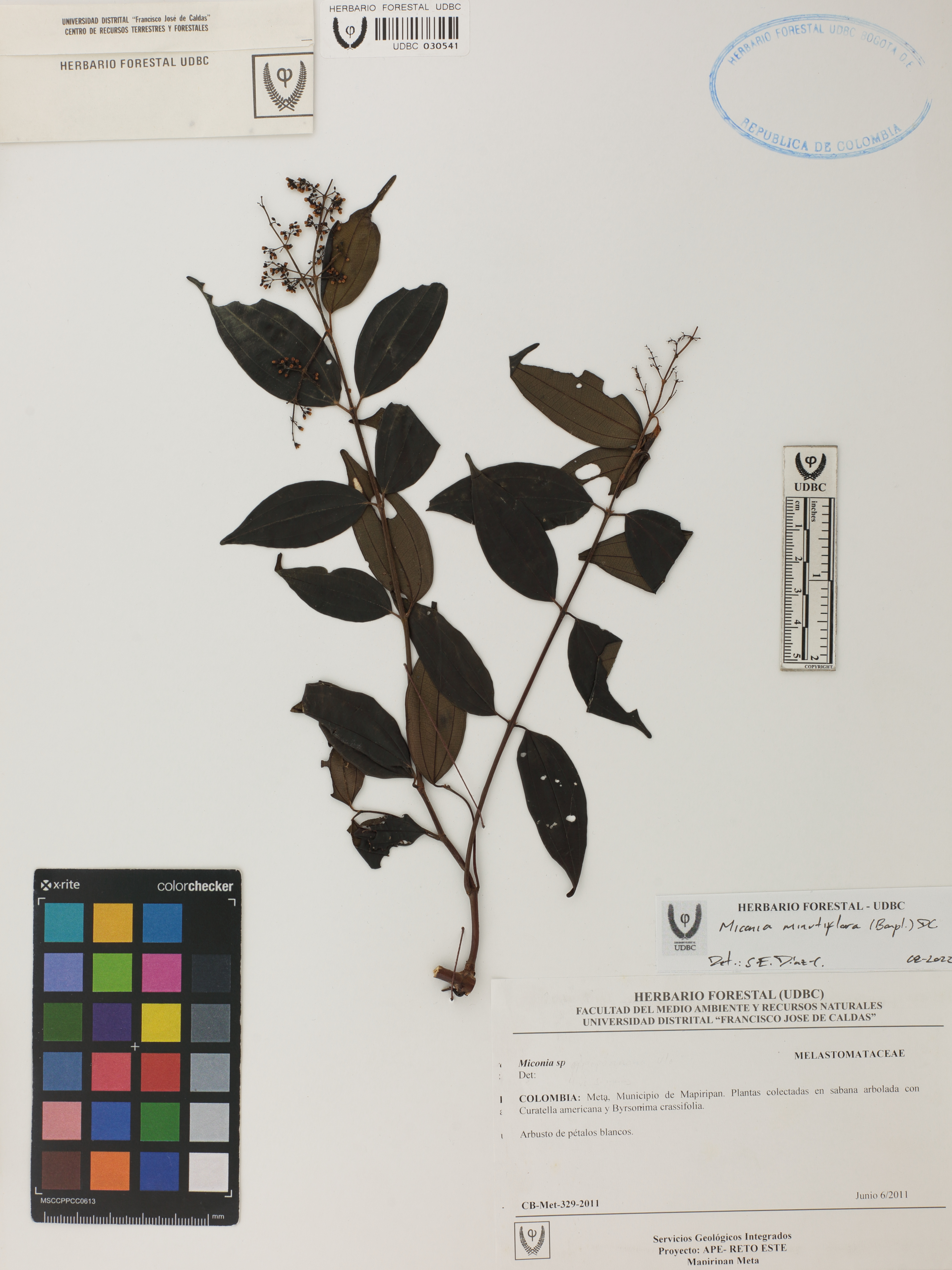 Fotografía del ejemplar SD 329, determinado como Miconia minutiflora en el año 2022