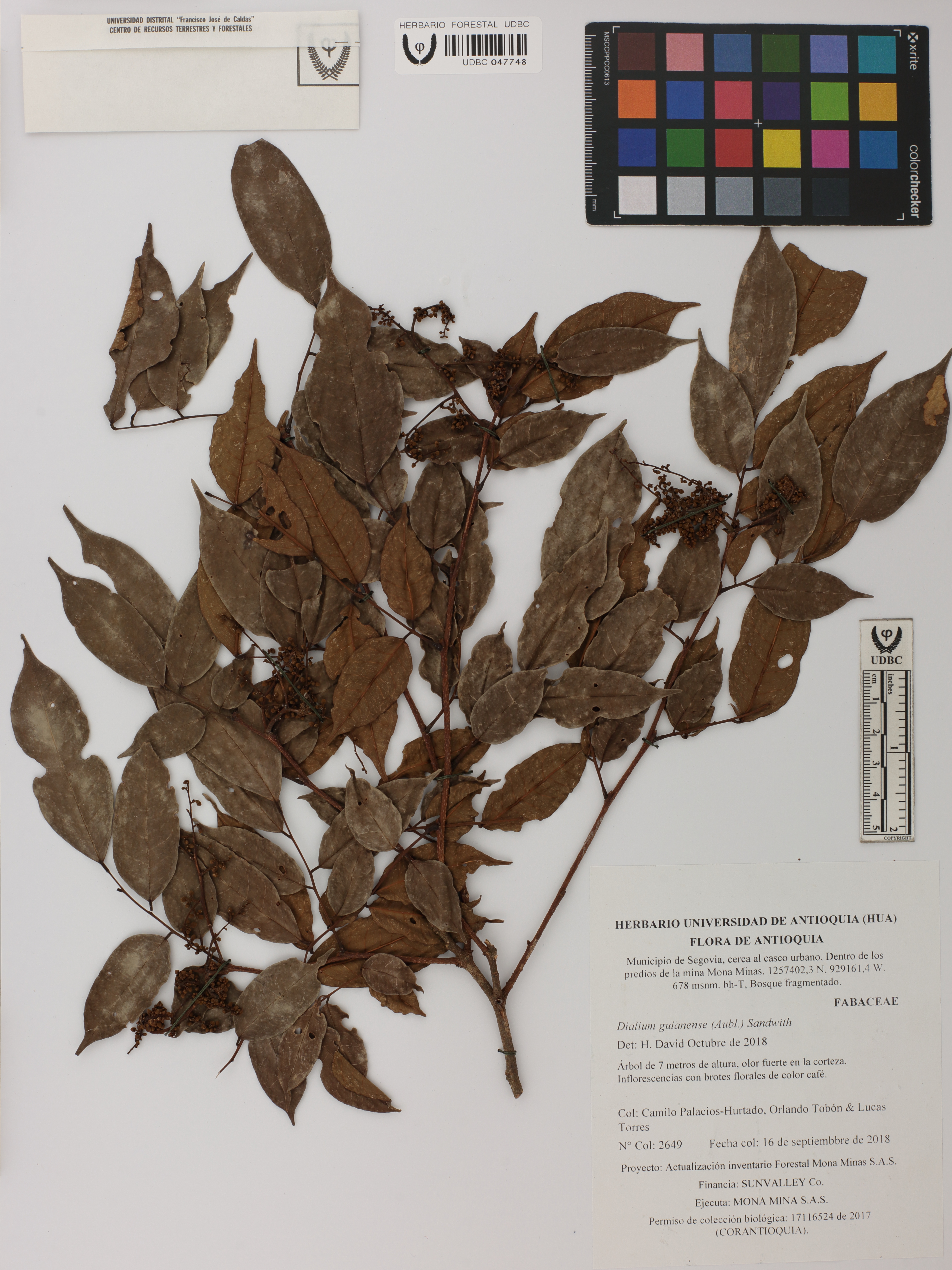 Fotografía del ejemplar Palacios-H., C. 2649, determinado como Dialium guianense en el año 2018