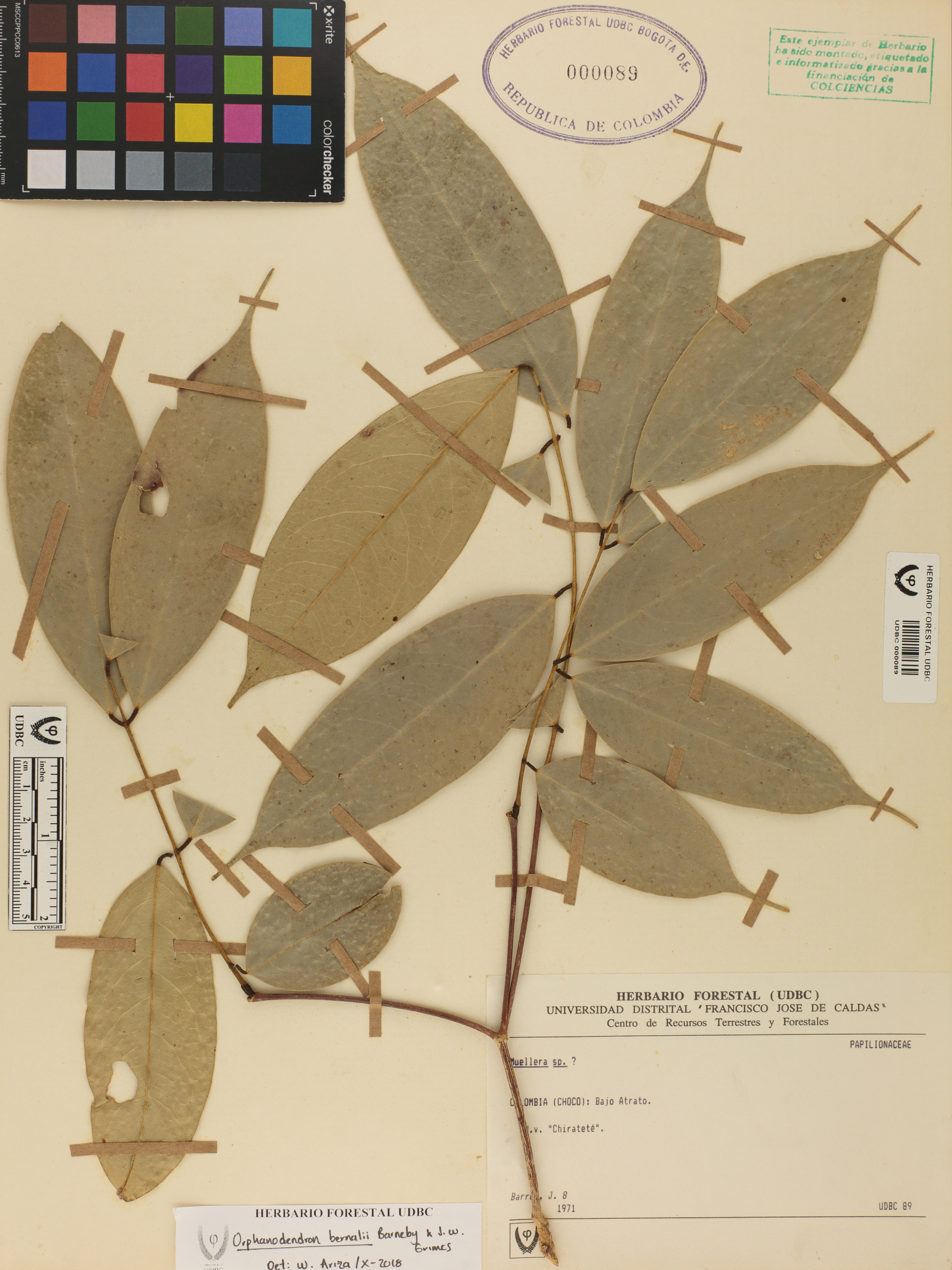 Fotografía del ejemplar Barros, J. 8, determinado como Orphanodendron bernalii en el año 2018