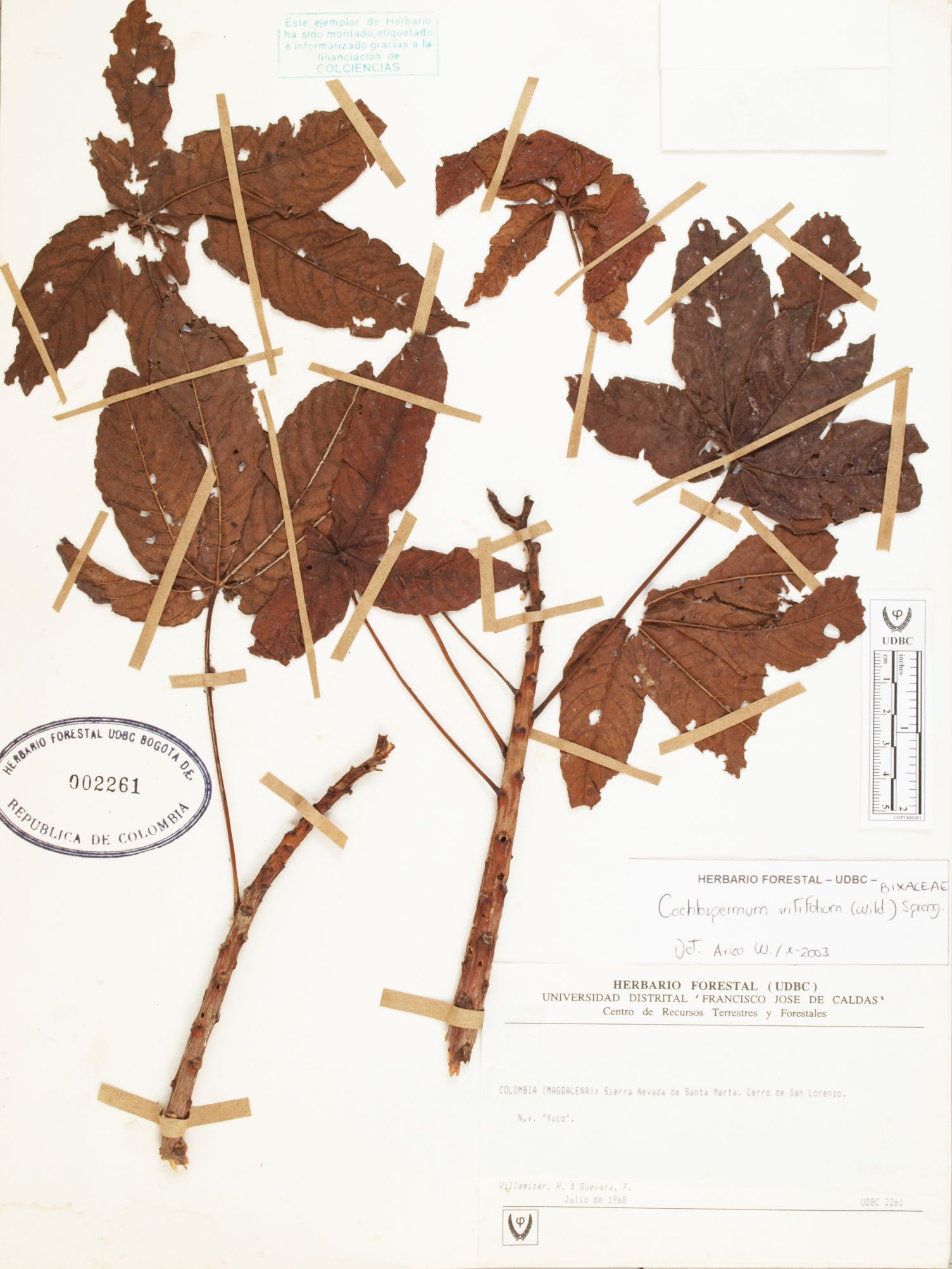 Fotografía del ejemplar Villamizar, H., determinado como Cochlospermum vitifolium en el año 2003