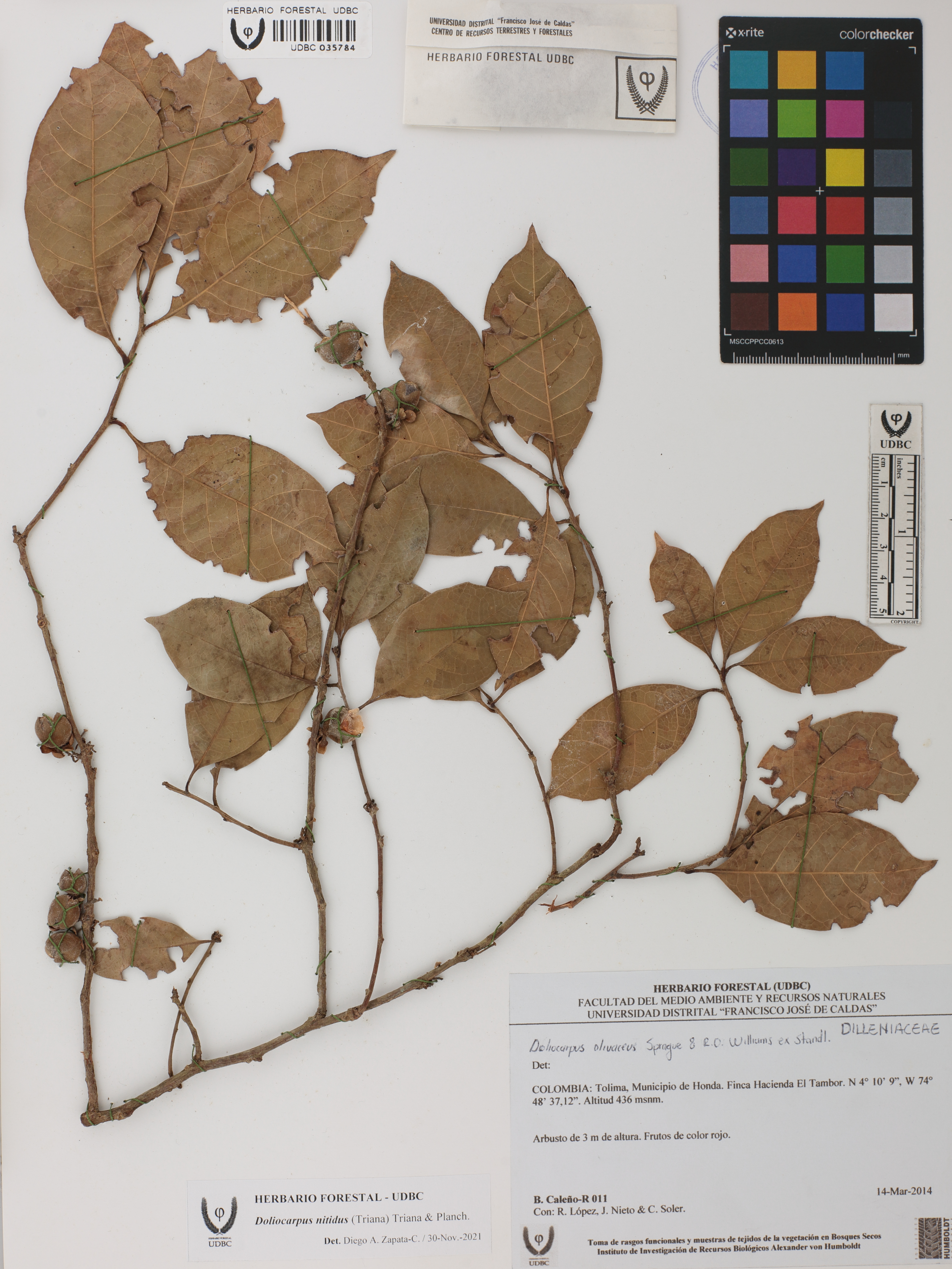 Fotografía del ejemplar Caleño-R., B. 11, determinado como Doliocarpus nitidus en el año 2021