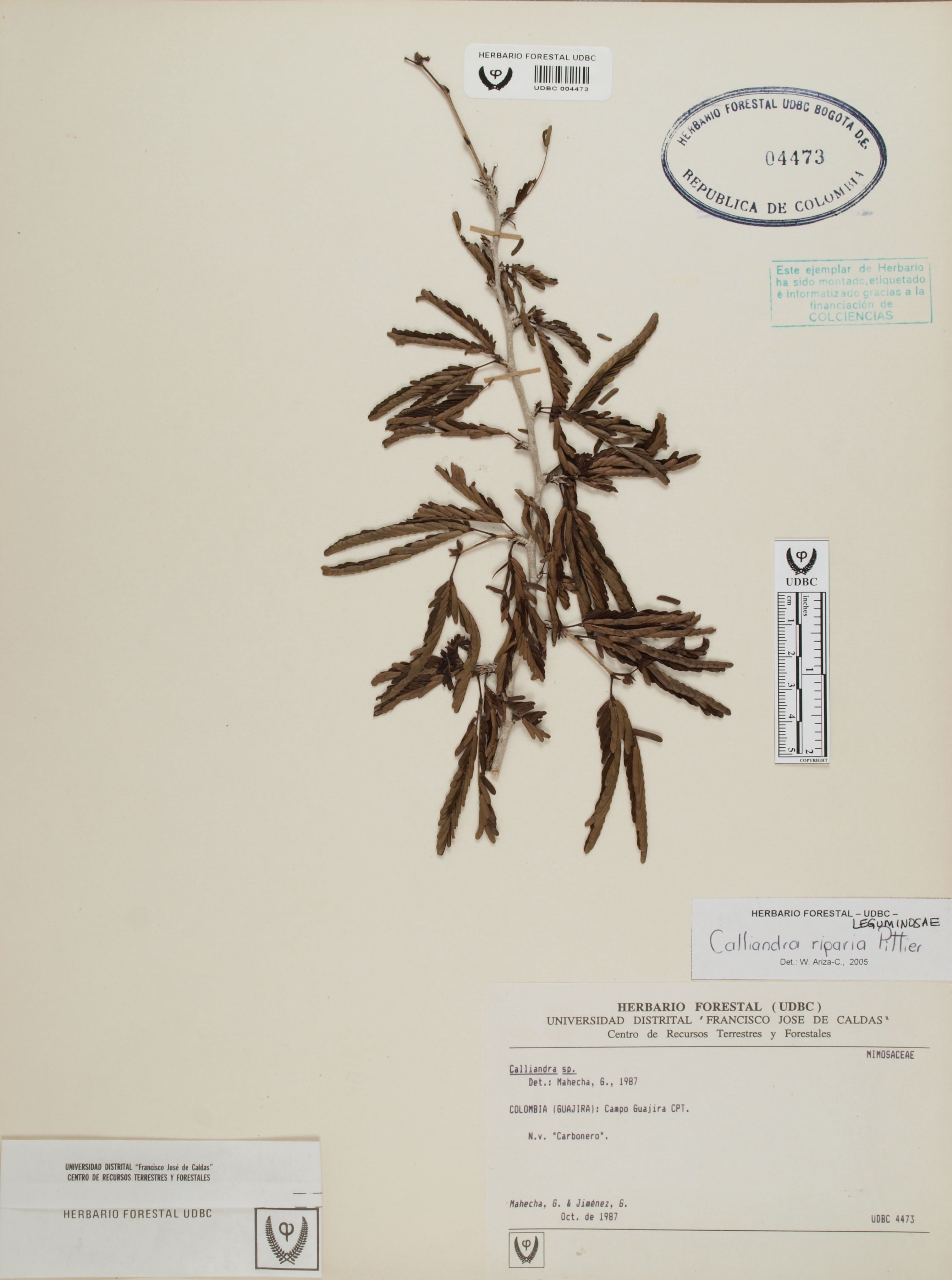 Fotografía del ejemplar Mahecha, G., determinado como Calliandra riparia en el año 2005