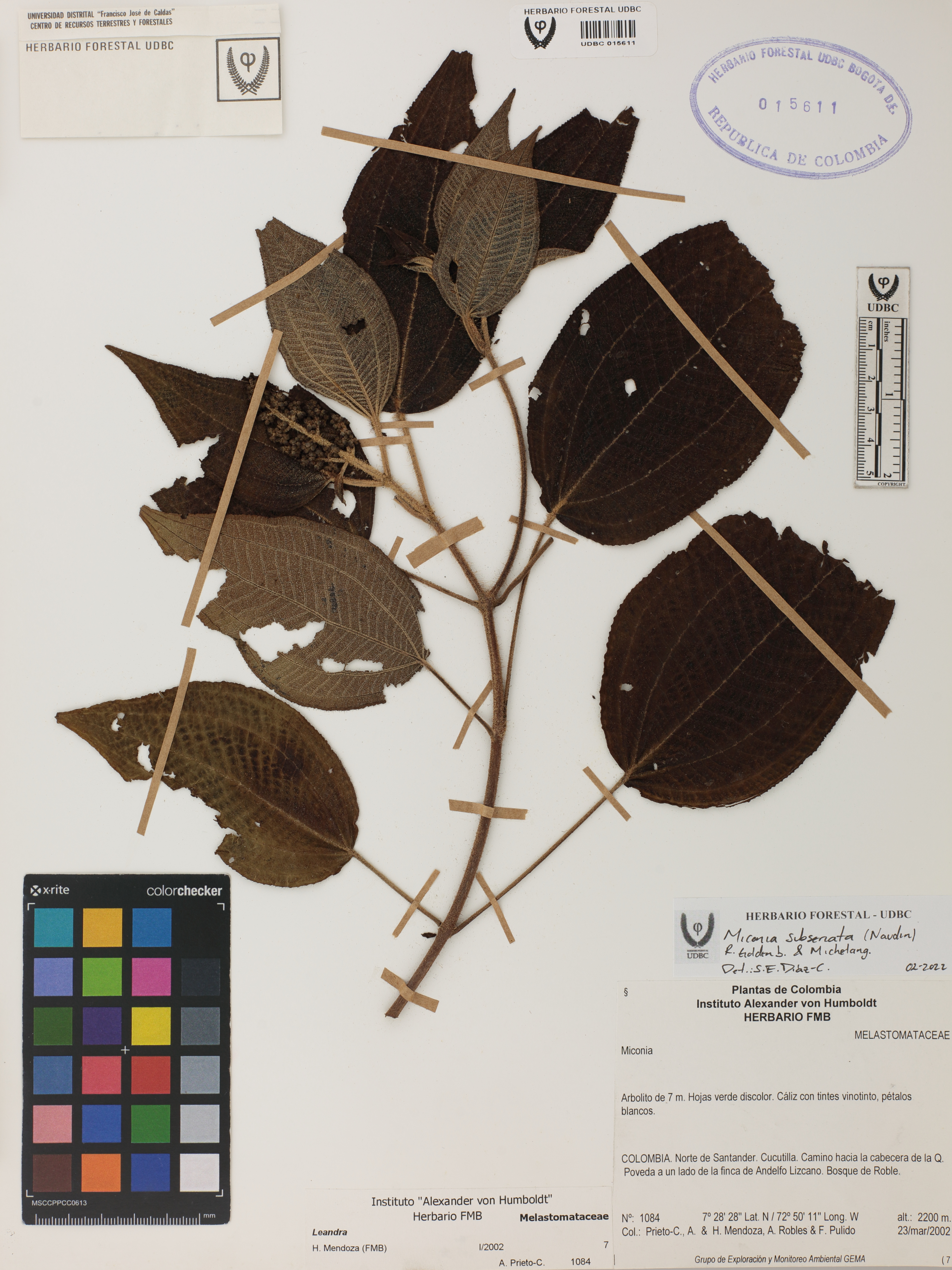 Fotografía del ejemplar Prieto-C., A. 1084, determinado como Miconia subseriata en el año 2022