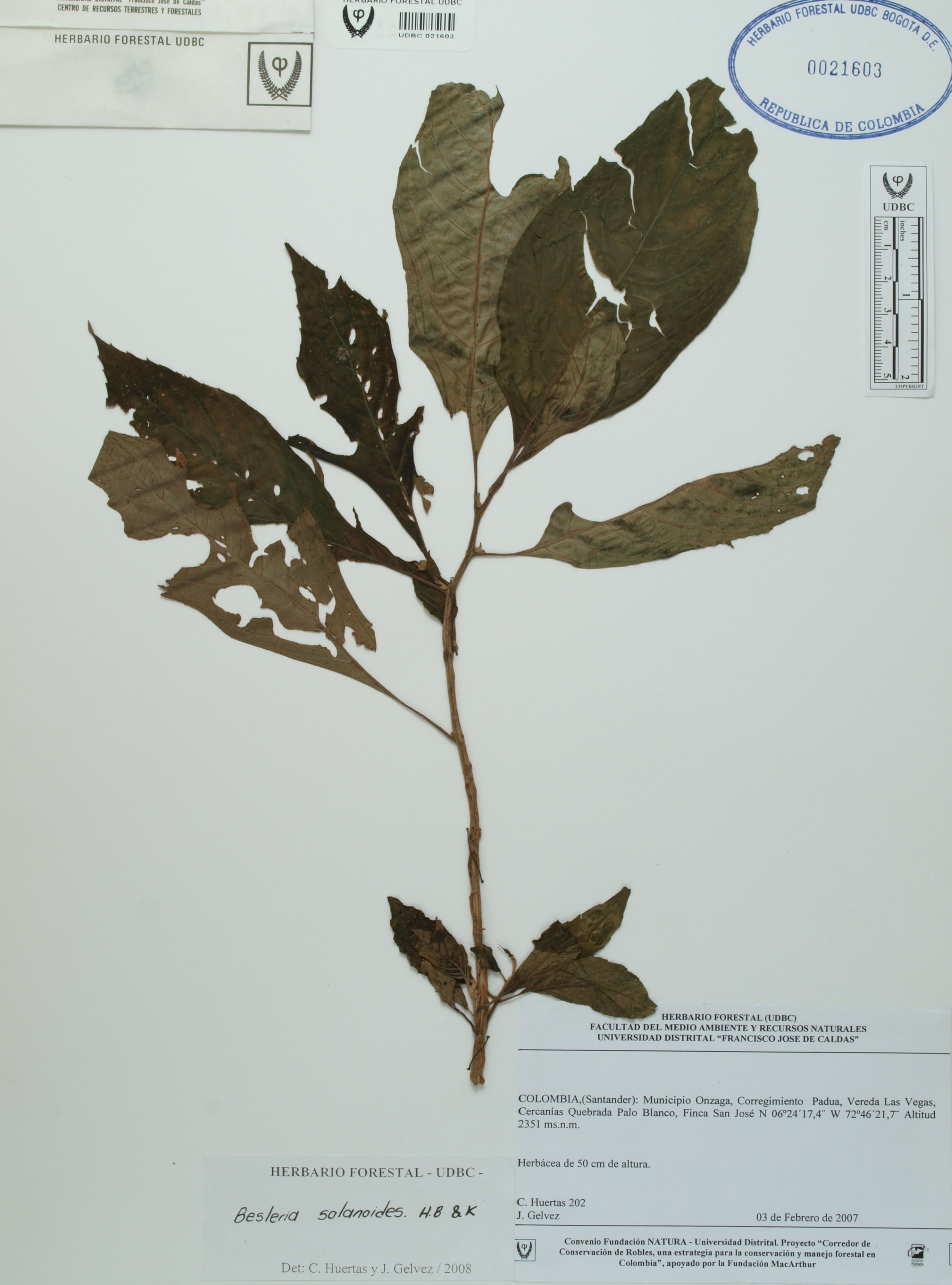 | dc.description | Fotografía del ejemplar Huertas, C. 202, determinado como Besleria solanoides en el año 2008 | |