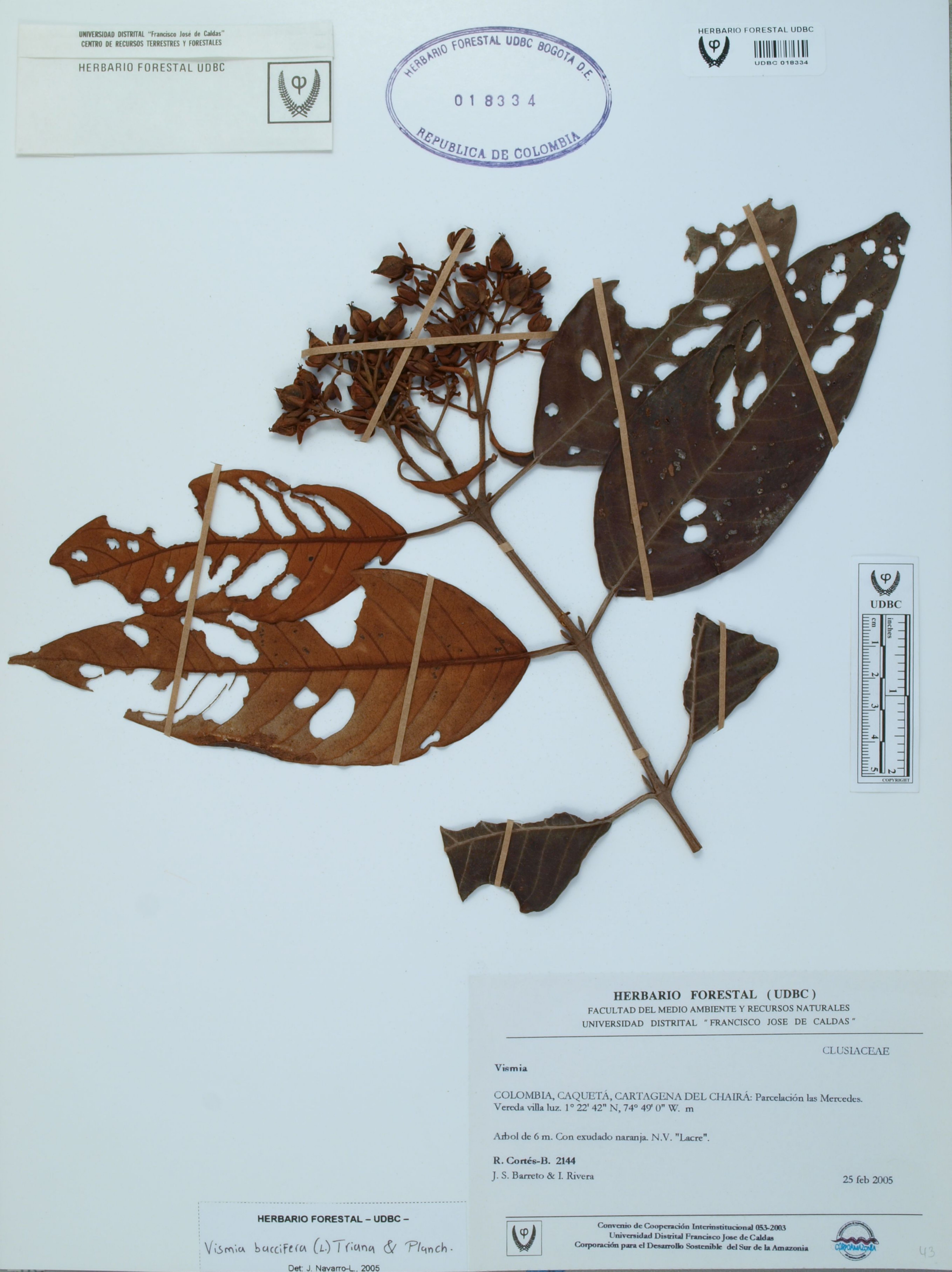 Fotografía del ejemplar Cortés-B., R. 2144, determinado como Vismia baccifera en el año 2005