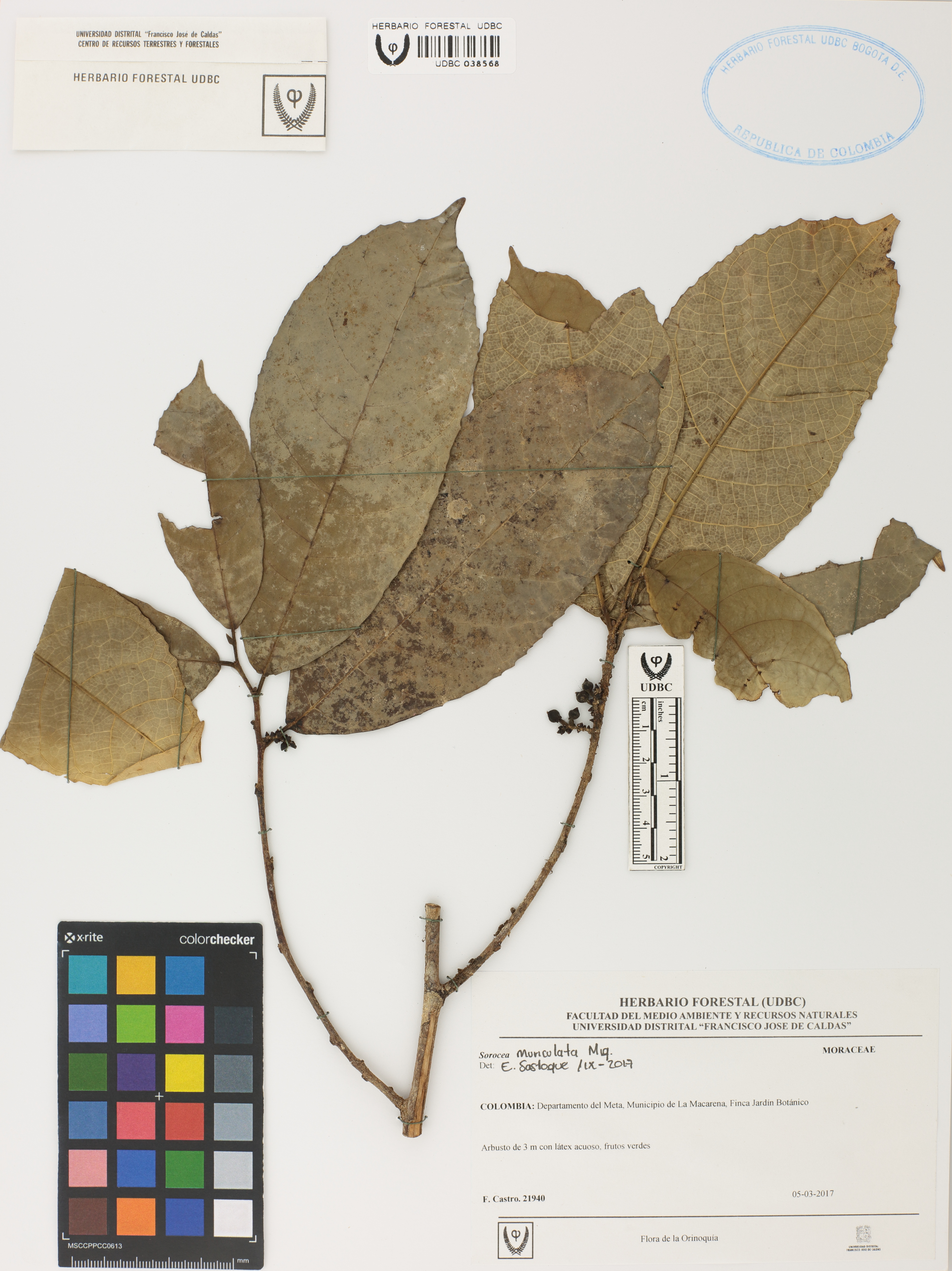 | dc.description | Fotografía del ejemplar Castro, F. 21940, determinado como Sorocea muriculata en el año 2017 | |