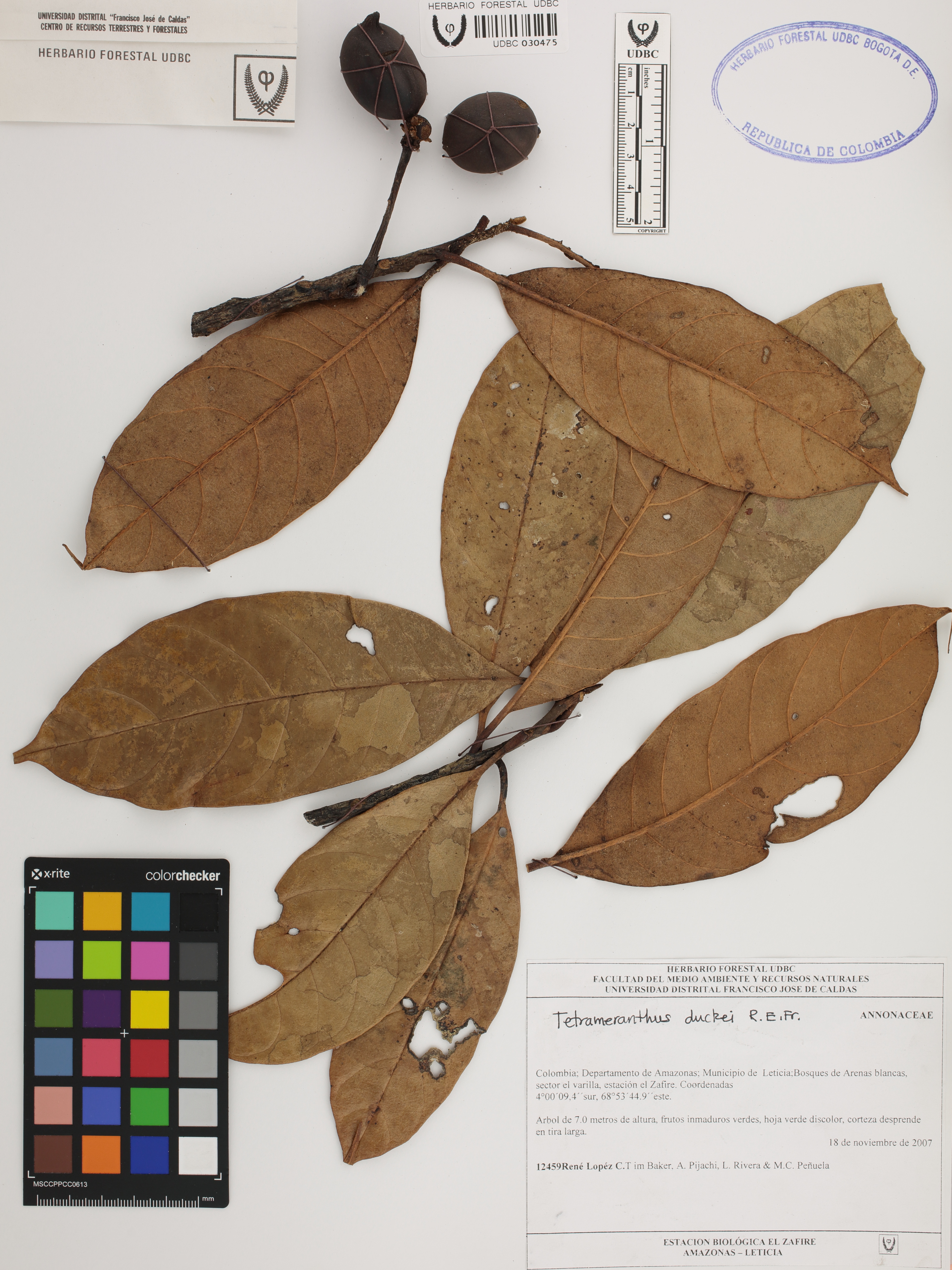 Fotografía del ejemplar López, R. 12459, determinado como Tetrameranthus duckei