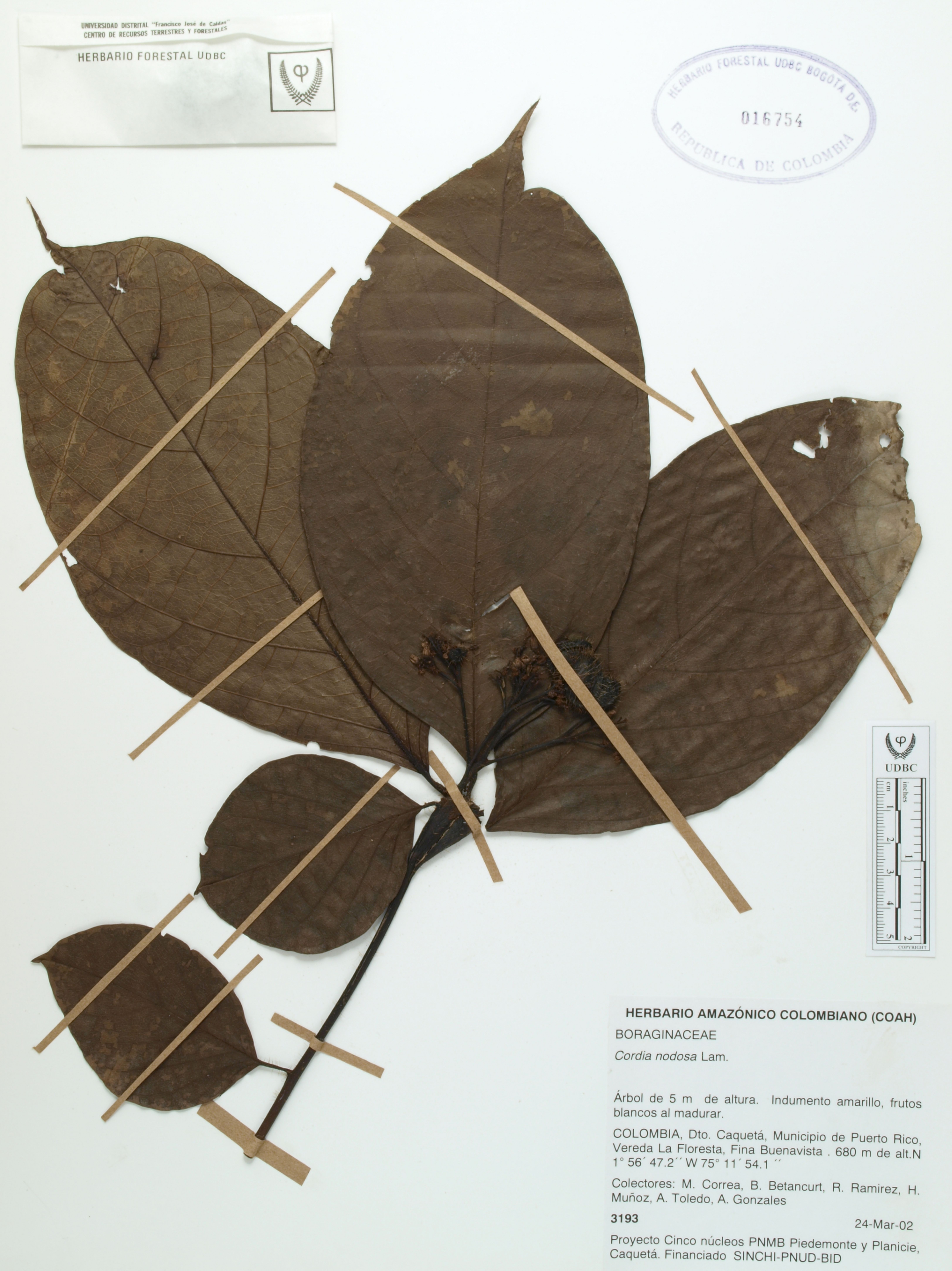 Fotografía del ejemplar Correa, M. 3193, determinado como Cordia nodosa