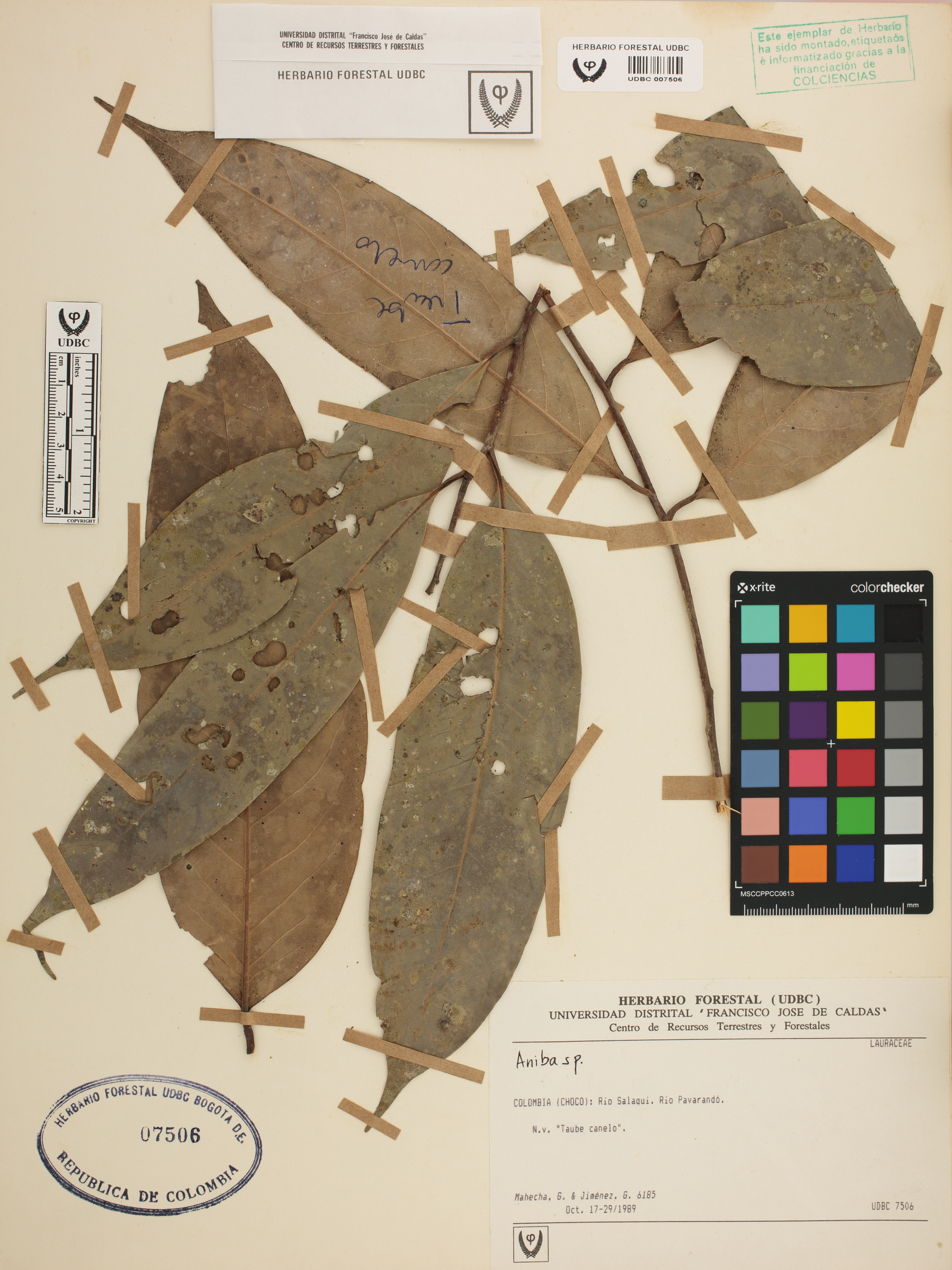 Fotografía del ejemplar Mahecha, G. 6185, determinado como Aniba sp.