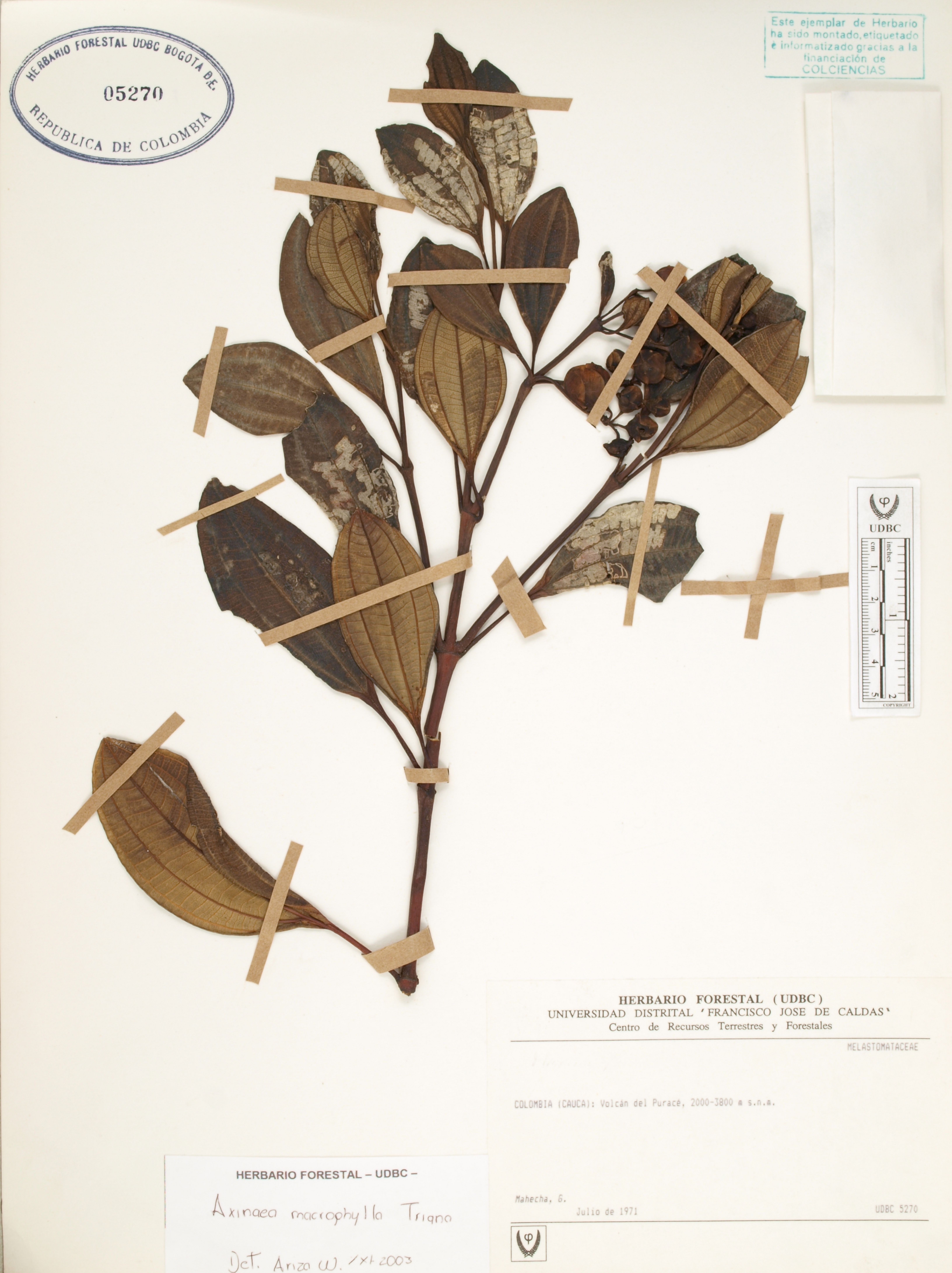 Fotografía del ejemplar Mahecha, G., determinado como Axinaea macrophylla