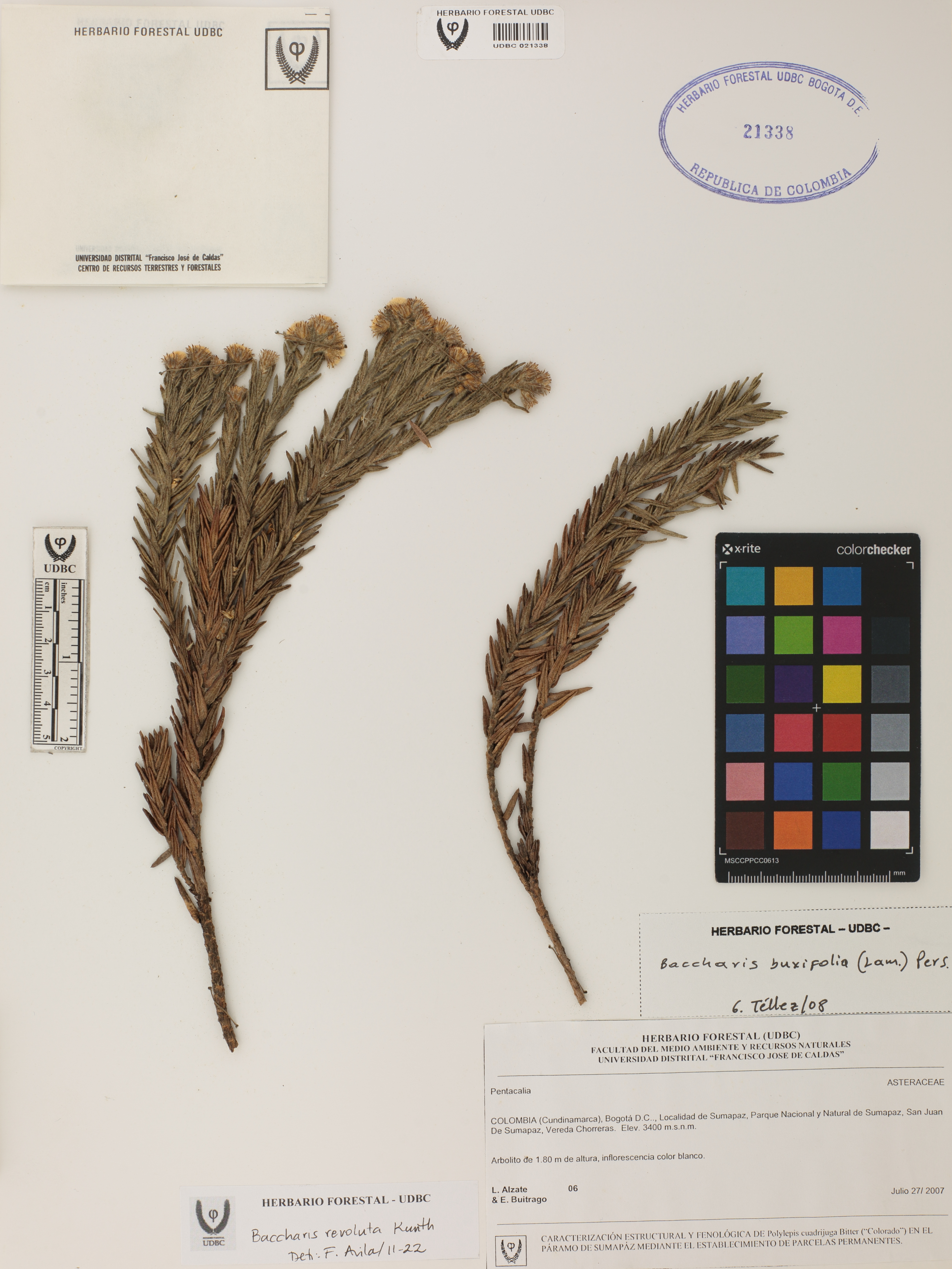 Fotografía del ejemplar Alzate, L. 6, determinado como Baccharis revoluta en el año 2022