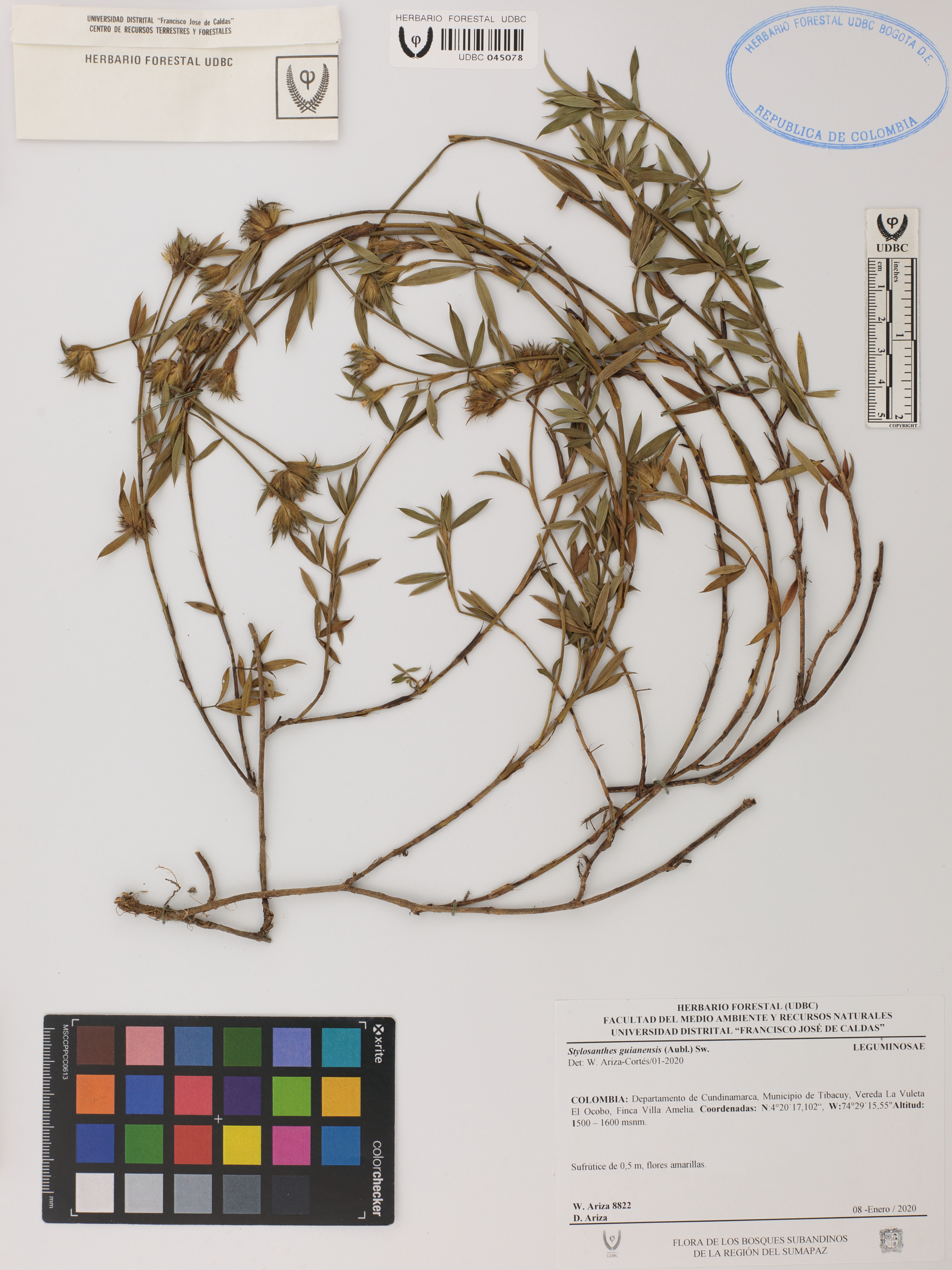 Fotografía del ejemplar Ariza-Cortés, W. 8822, determinado como Stylosanthes guianensis en el año 2020