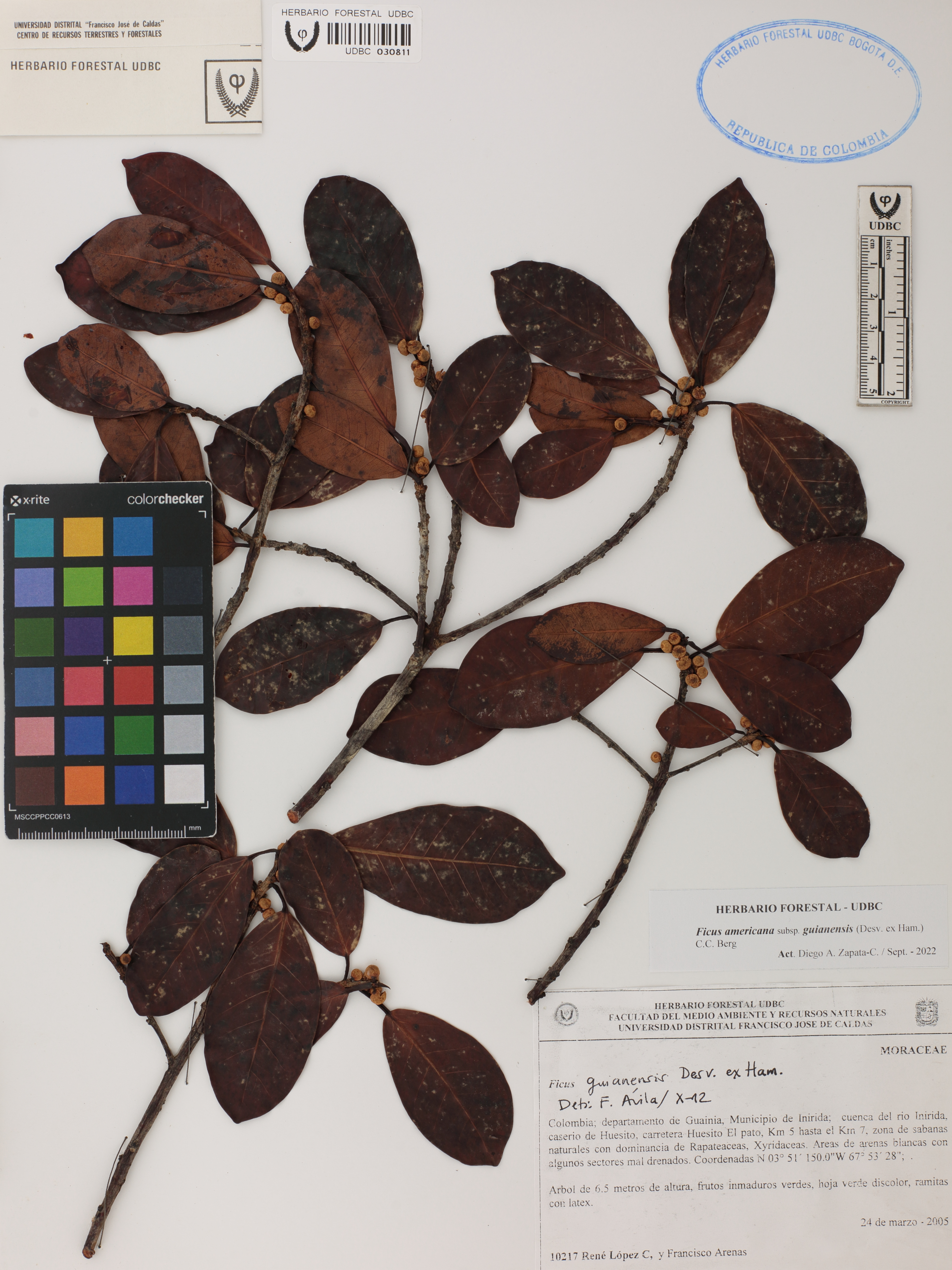 Fotografía del ejemplar López, R. 10217, determinado como Ficus americana subsp. guianensis en el año 2012
