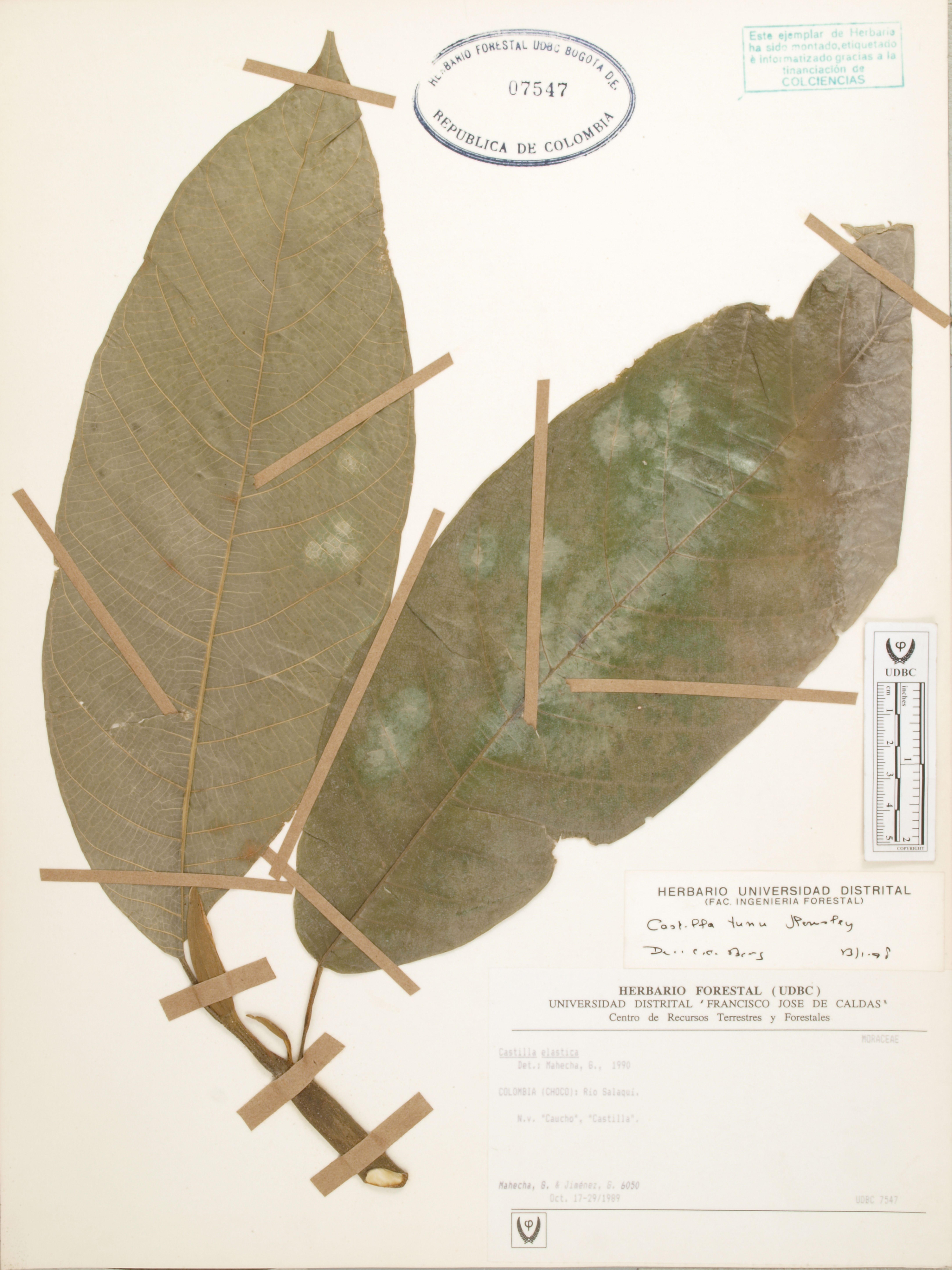 Fotografía del ejemplar Mahecha, G. 6050, determinado como Castilla tunu en el año 1997