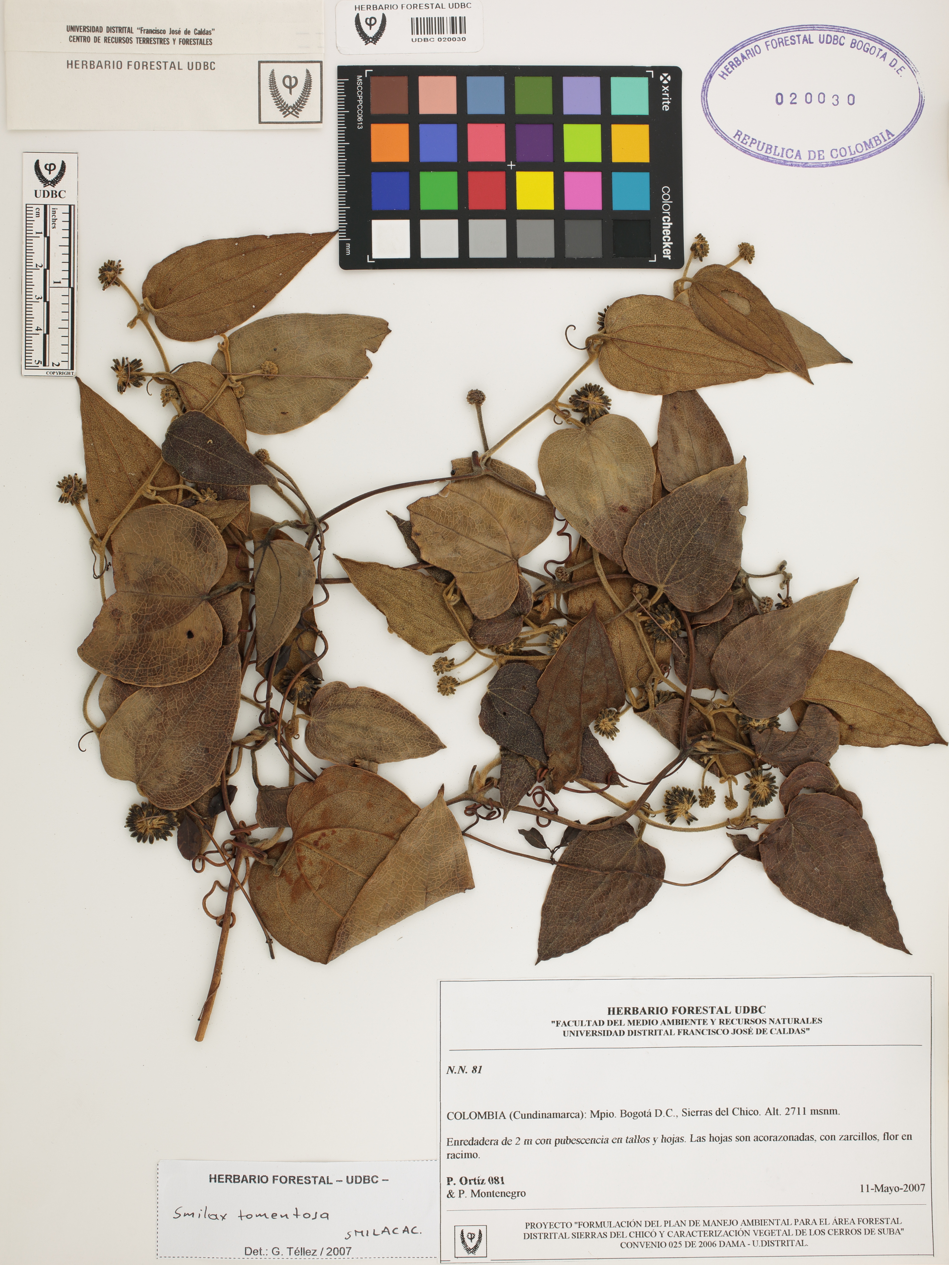 | dc.description | Fotografía del ejemplar Ortiz, P. 81, determinado como Smilax tomentosa en el año 2007 | |