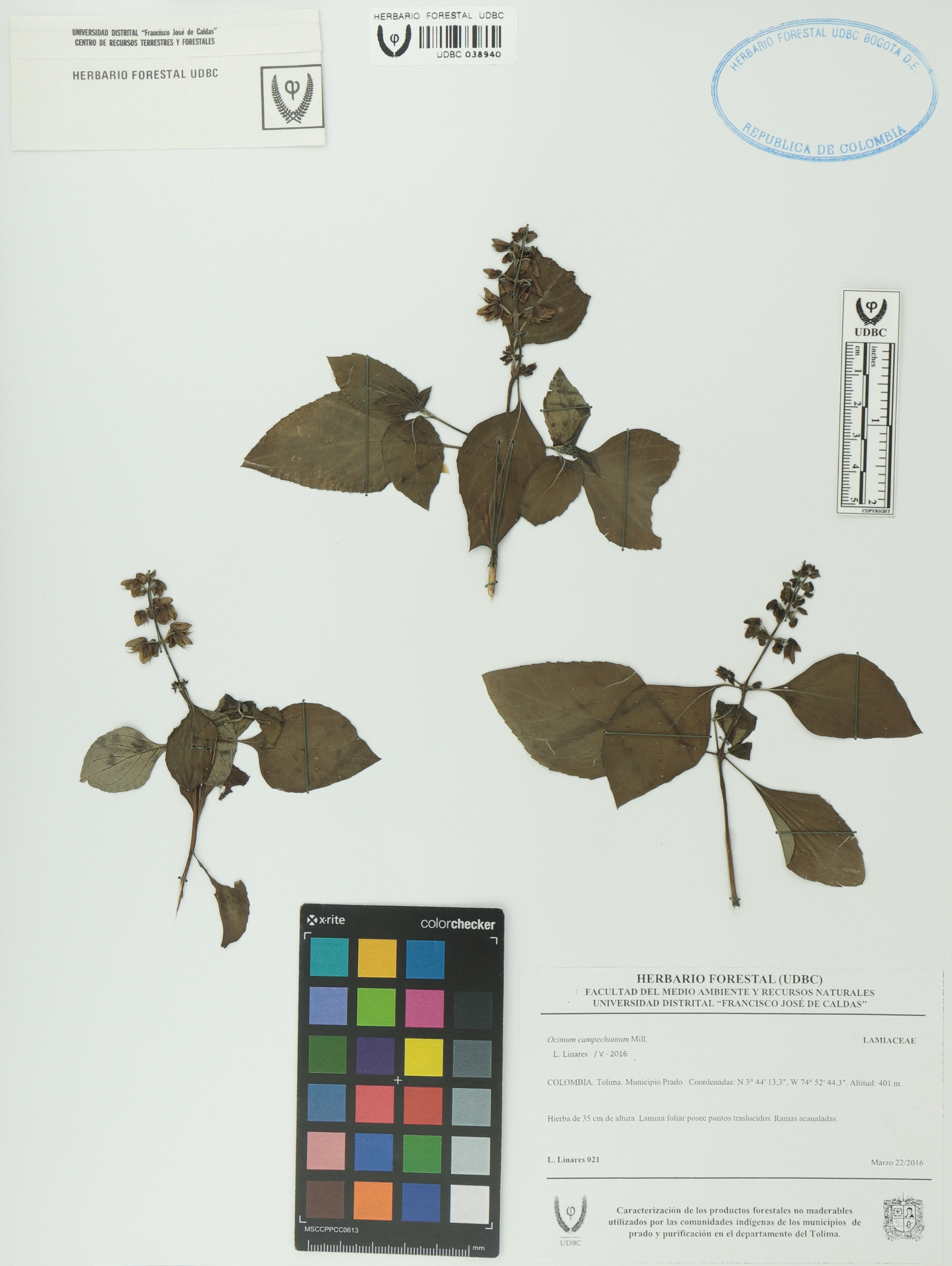 Fotografía del ejemplar Linares, L. 21, determinado como Ocimum campechianum en el año 2016