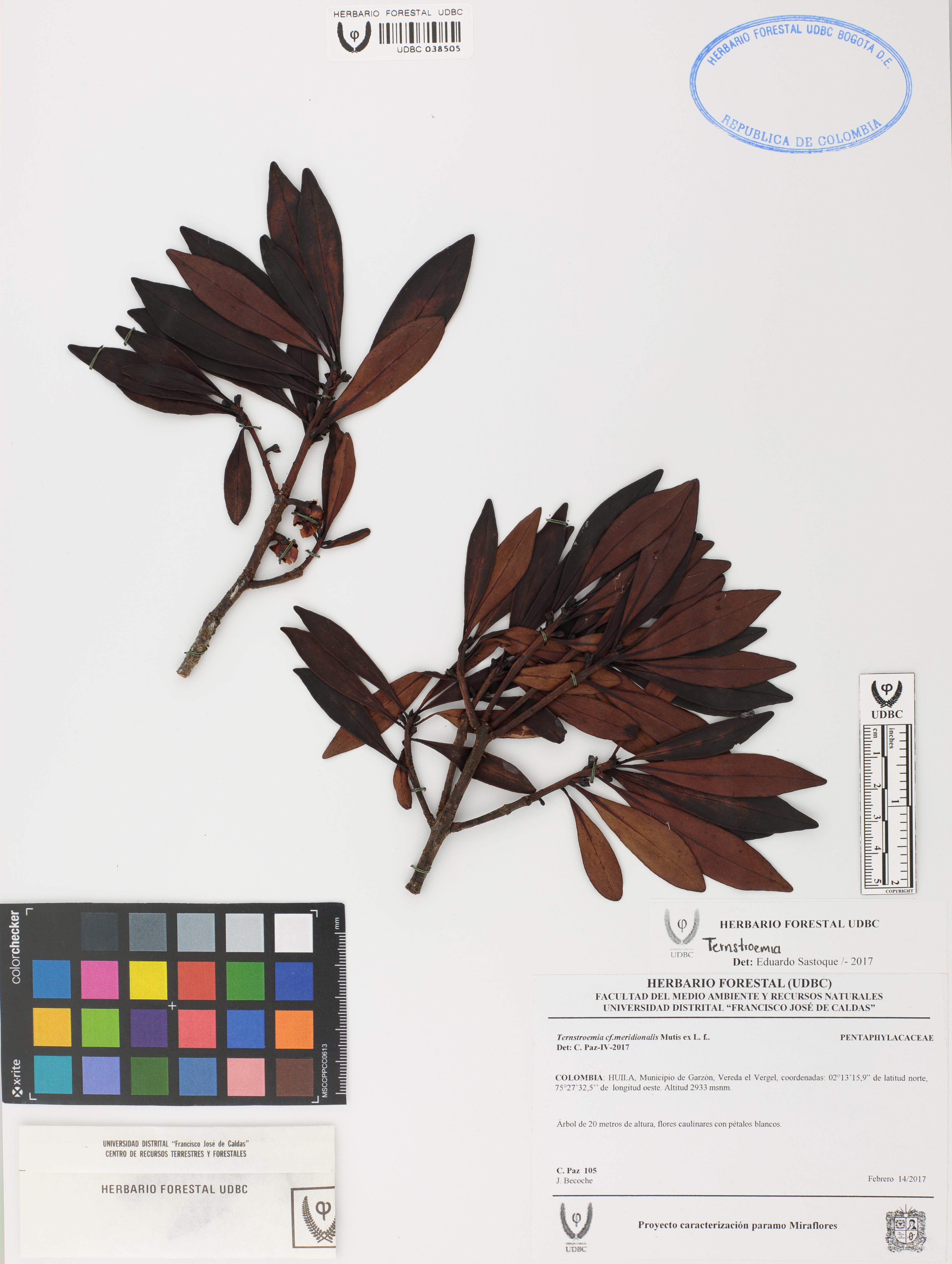 Fotografía del ejemplar Paz, C. 105, determinado como Ternstroemia sp. en el año 2017