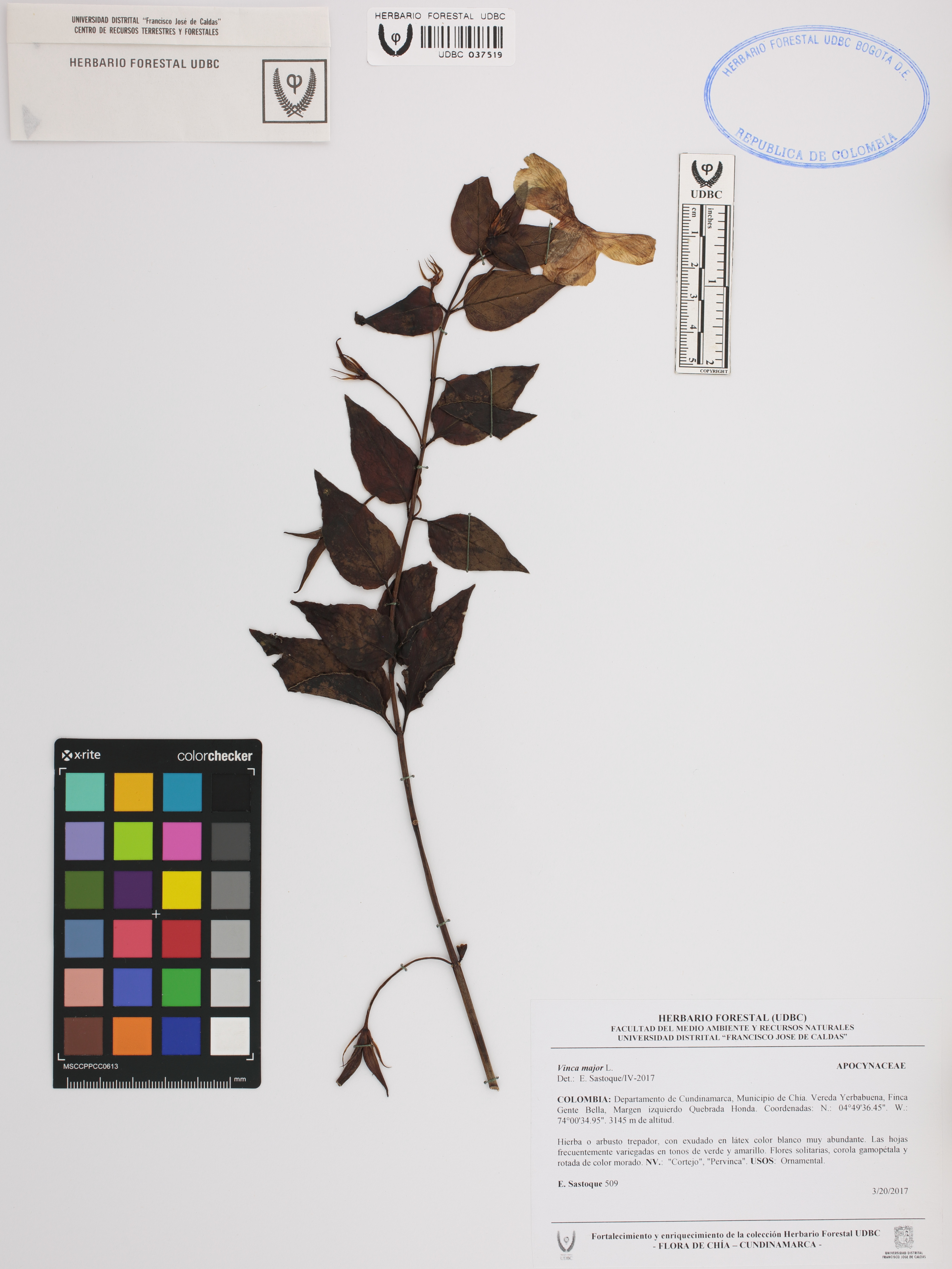 Fotografía del ejemplar Sastoque, E. 509, determinado como Vinca major en el año 2017