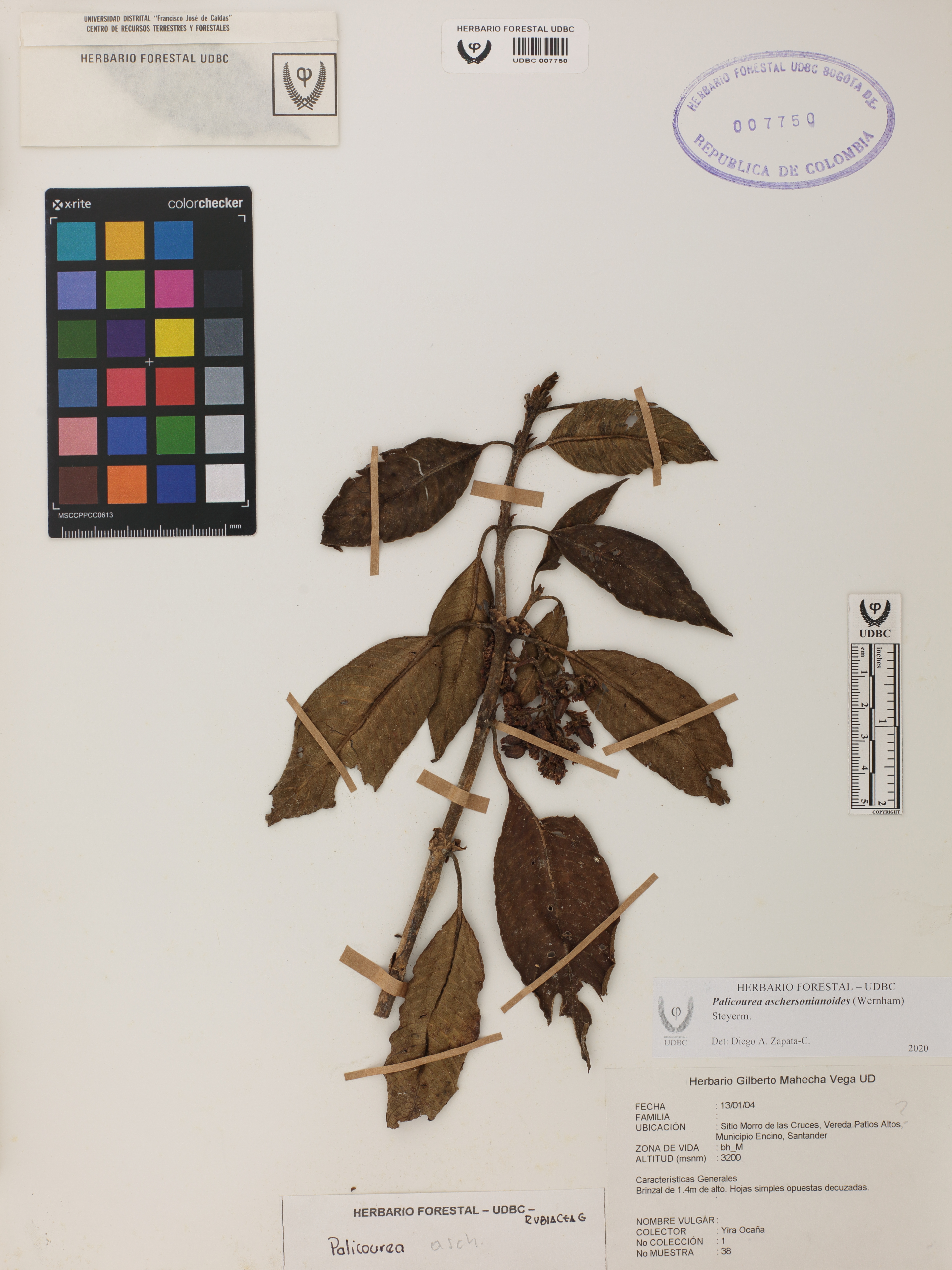 Fotografía del ejemplar Ocaña, Y. 1, determinado como Palicourea aschersonianoides en el año 2020