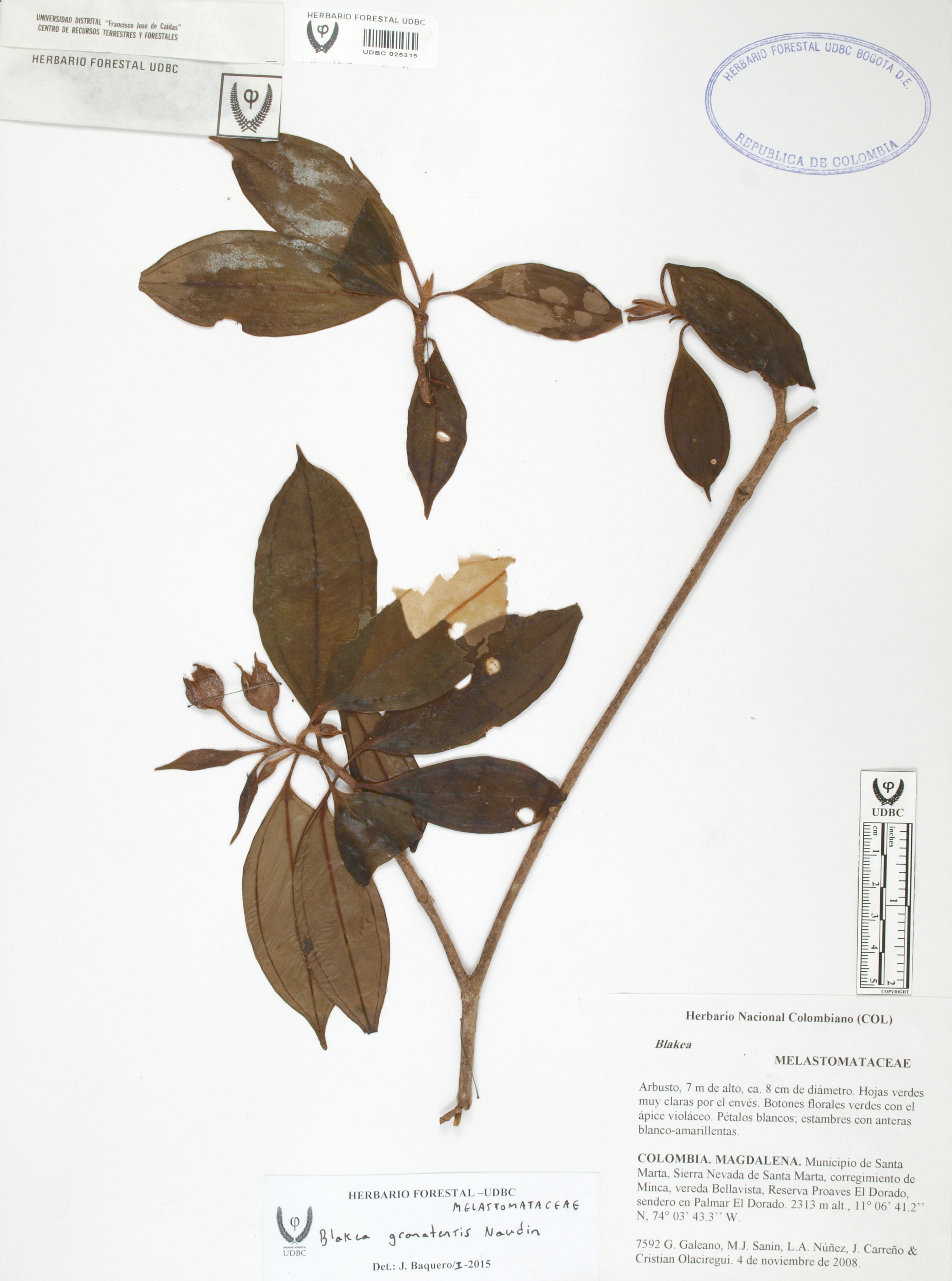 | dc.description | Fotografía del ejemplar Galeano, G. 7592, determinado como Blakea granatensis en el año 2015 | |