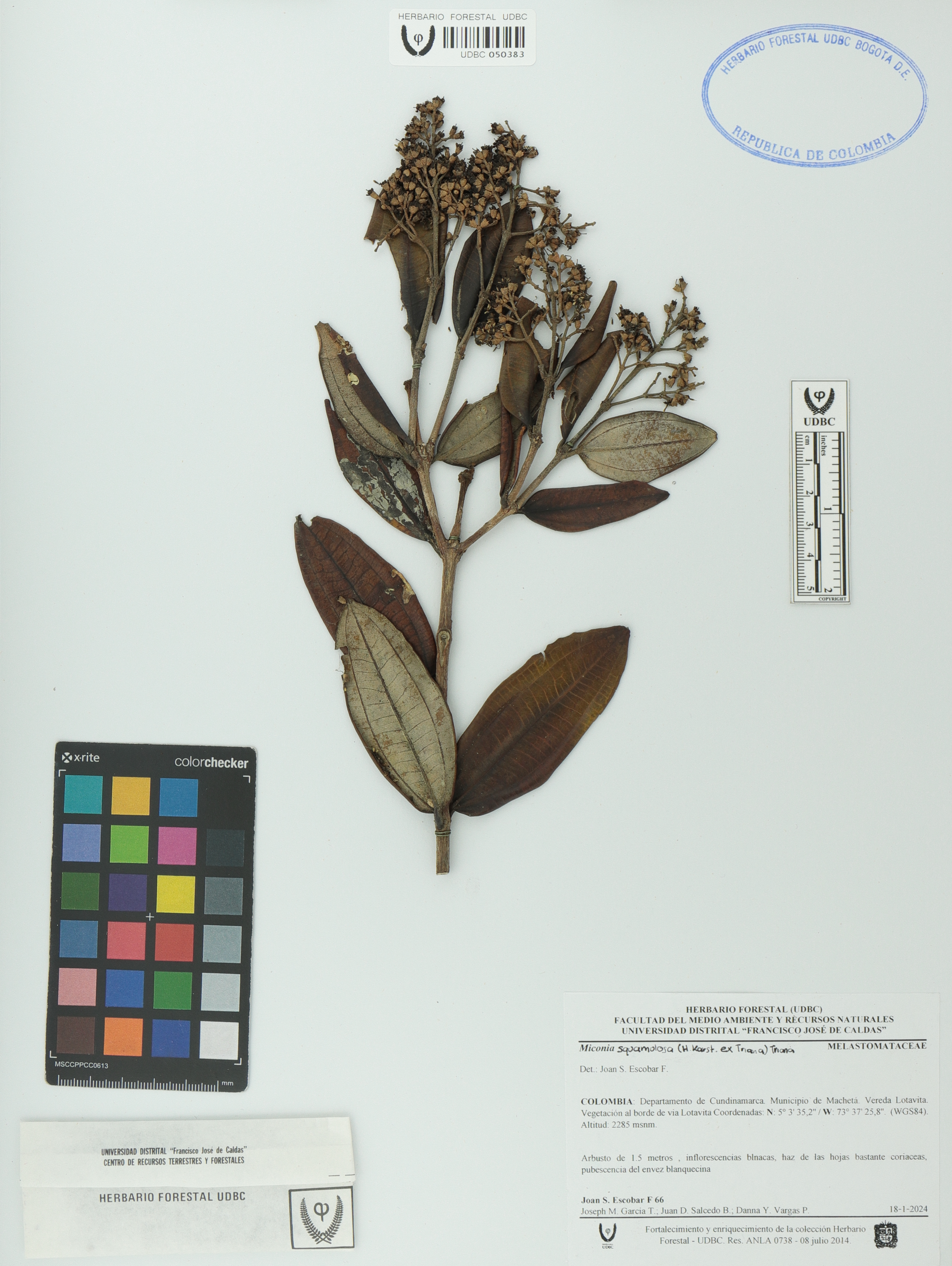 Fotografía del ejemplar Escobar, J. 66, determinado como Miconia squamulosa en el año 2024