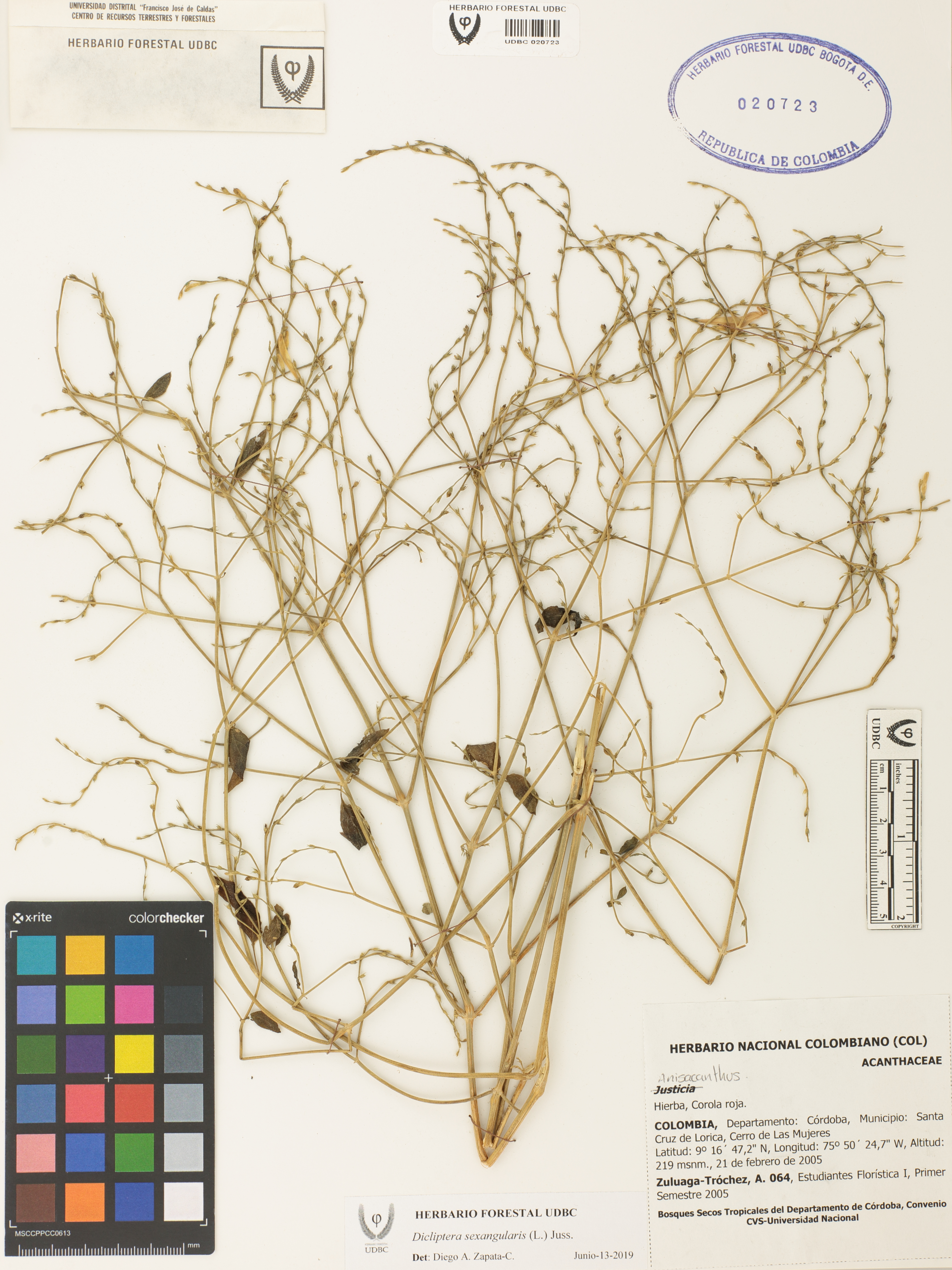 | dc.description | Fotografía del ejemplar Zuluaga-Tróchez, A. 64, determinado como Dicliptera sexangularis en el año 2019 | |
