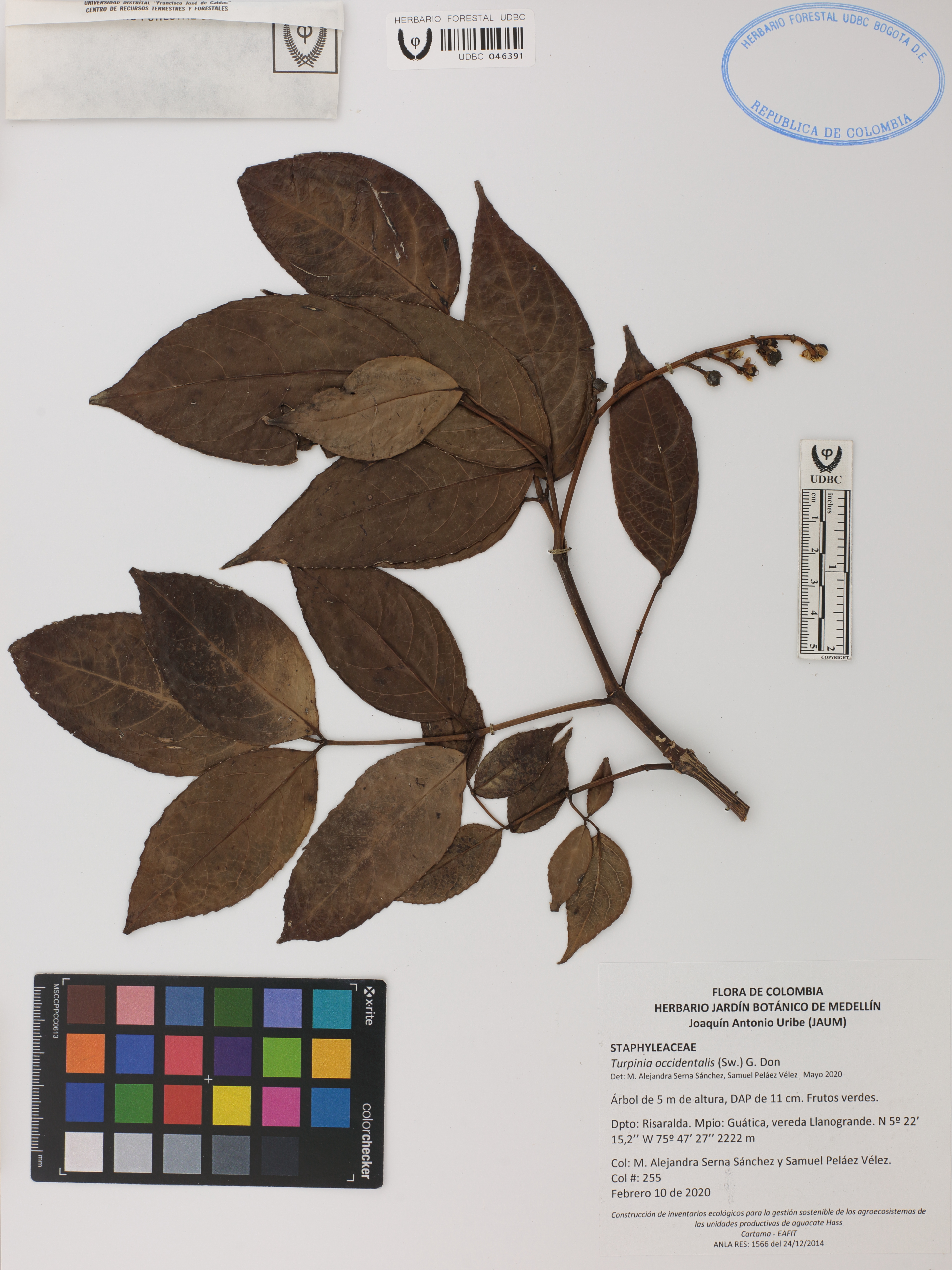 Fotografía del ejemplar Serna-Sánchez, M. 255, determinado como Turpinia occidentalis en el año 2020