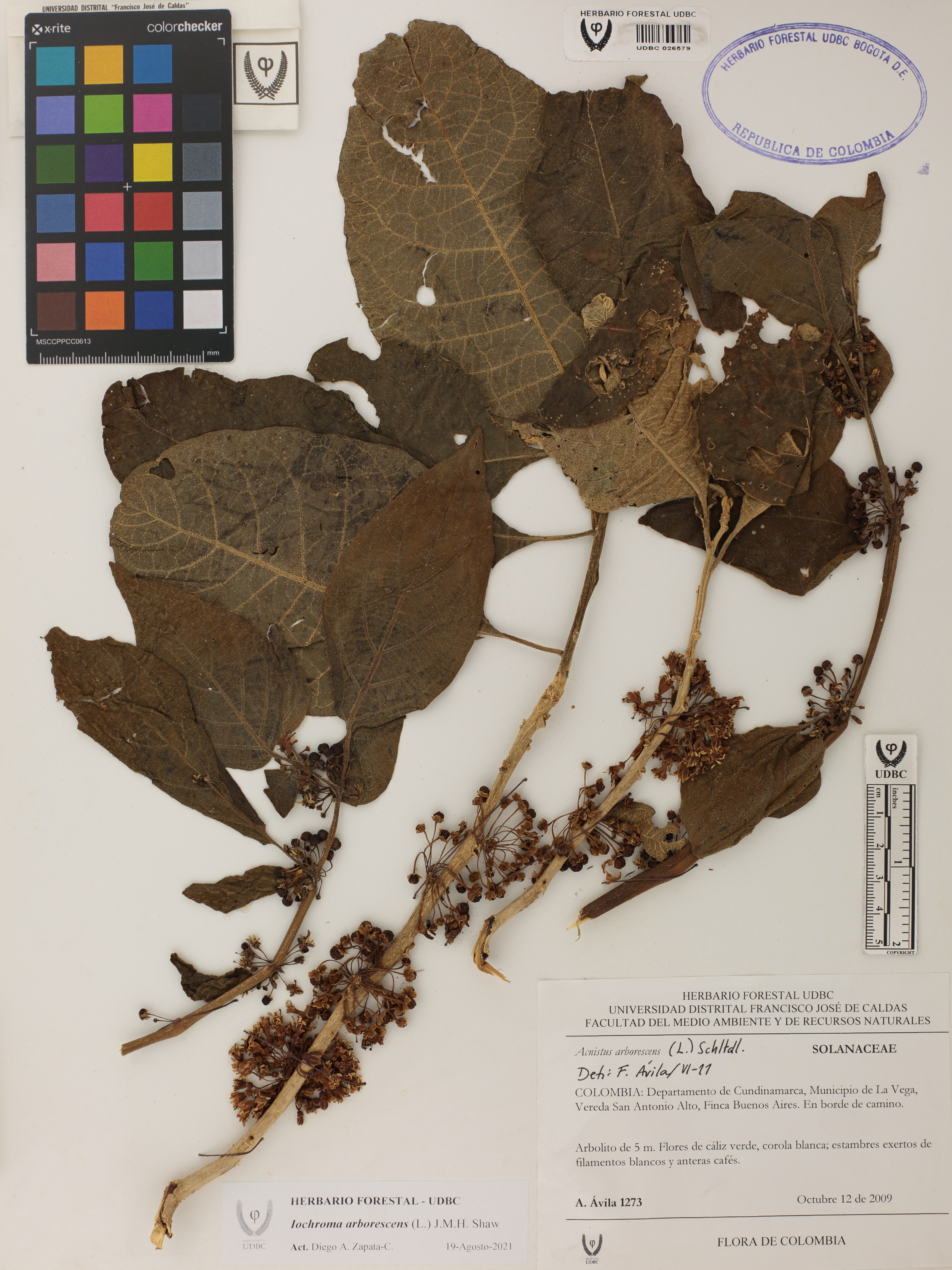 | dc.description | Fotografía del ejemplar Ávila, F. 1273, determinado como Iochroma arborescens en el año 2011 | |